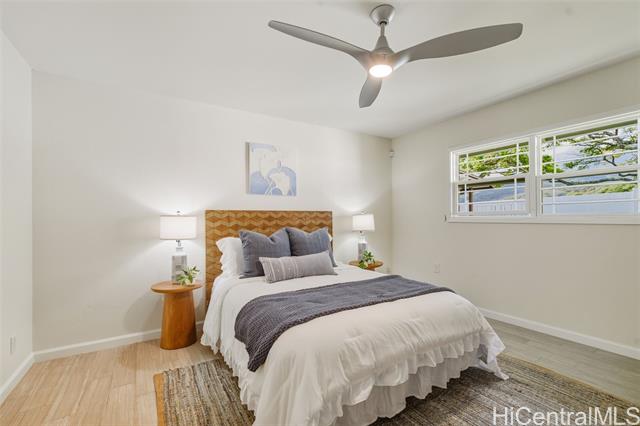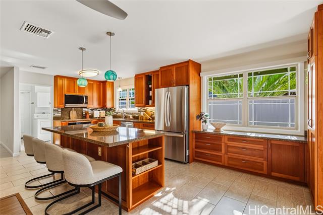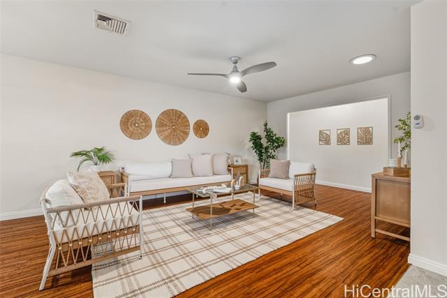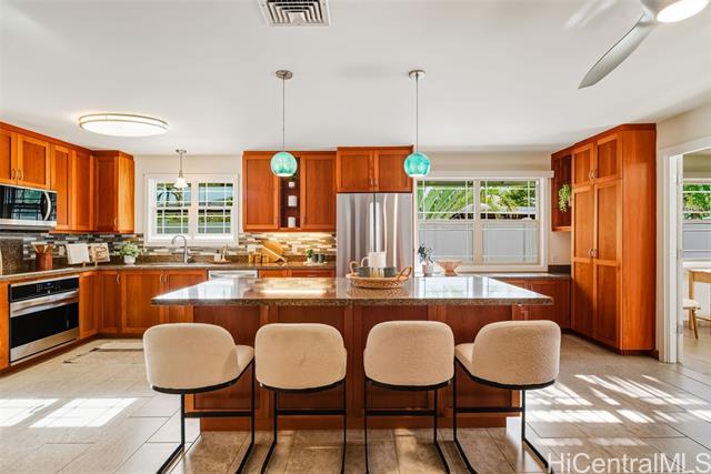 Welcome to a place where comfort, warmth, and Kailua living truly come together. Nestled in the well-loved Kaopa neighborhood of Kailua, this 4-bedroom, 2-bath home offers nearly 2,000 sq. ft. of inviting interior space on a generous 6,000 sq. ft. lot. Cool central AC and abundant natural light create an atmosphere of ease and belonging. Inside, a second family room provides the flexibility every household appreciates, whether you imagine it as a play space, media room, or a cozy retreat for gatherings. Step out to the covered lanai, perfect for weekend mornings, evening dinners, or simply enjoying the breeze. The fully fenced yard offers privacy, and room to play, garden, or relax. Thoughtfully upgraded with an owned photovoltaic system, this home is designed for both beautiful living and long-term peace of mind. Located just minutes from schools, grocery stores, and Kailua’s favorite local restaurants, it brings everyday convenience right to your doorstep.