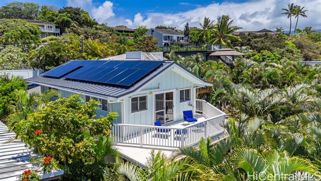 Experience the best of Kailua living in this beautifully updated 4-bed, 3-bath beach home just steps from iconic Kailua Beach Park. Privately tucked down a quiet lane, this three-level home offers mountain views, peek-a-boo ocean views, and a flexible floor plan ideal for multi-generational living or rental income. The top level features a spacious primary suite with a wraparound lanai and an additional bedroom or office. The main level includes a fully renovated kitchen, spacious living area, screened lanai, office/den, full bath, and laundry area. The lower level is a separate 1-bed, 1-bath suite with its own entry, wet bar, and covered lanai, perfect for guests or rental. Upgrades include a new metal roof, fully permitted solar PV system with battery backup, new AC systems, remodeled bathrooms, EV charging, LED lighting, and updated appliances. Current rental income is $8,400/month with leases in place through Feb 2026. Steps to Kailua Beach Park, Lanikai, Buzz’s, Kalapawai, Whole Foods, Target, and the vibrant shops and eateries of Kailua Town. This rare opportunity blends lifestyle, flexibility, and strong investment potential in one of Kailua's most desirable neighborhoods.
