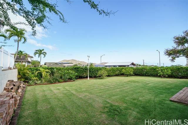 Light & airy! You will love this large spacious 4-bedroom, 2.5-bathroom home and appreciate all it has to offer! Located on a hillside at the end of a cul-de-sac, the tropical breezes flow thought this home all year long. This residence features a formal living room, formal dining room, family room, and a large, enclosed lanai. The home was entirely remodeled in 2023. The kitchen has newer white cabinet, granite countertops and 2 pantries. The large primary walk-in shower has two shower heads, room for two! The interior of the house was just refreshed with a new coat of paint in November 2025. The large yard has been newly landscaped with a beautiful variety of tropical plants; it's the perfect setting for BBQs and family fun! First Open House will be held on 12/7/25, 2-5pm.