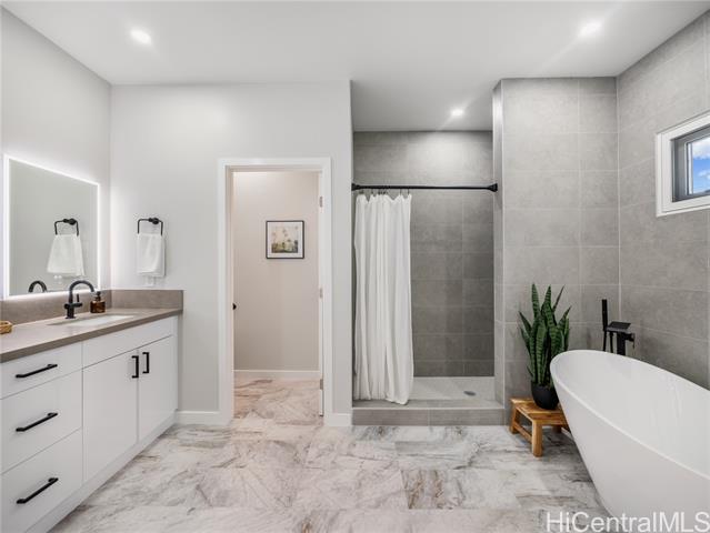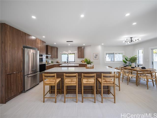 Welcome to this stunning custom-built modern luxury residence in the highly desirable Keolu Hills neighborhood of Kailua. Perfectly situated near shopping, dining, schools, freeway access, and just minutes to world-class beaches, this brand-new home offers the ultimate in convenience and island living. Featuring 7 bedrooms, 6.5 bathrooms, and over 4,800 sq. ft. of living space, this home is designed with comfort and versatility in mind. Spacious open-concept living areas flow seamlessly to covered lanais, creating ideal spaces for entertaining family and friends. The gourmet kitchen and bathrooms are outfitted with granite countertops, rich wood cabinetry, and carefully selected high-end appliances. Split AC systems throughout provide year-round comfort. This property is truly a must-see to appreciate the craftsmanship, space, and lifestyle it offers. Tax may not updated for this new development.