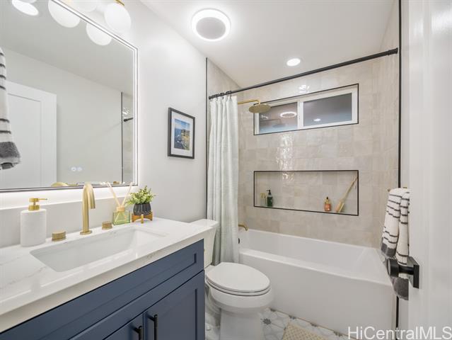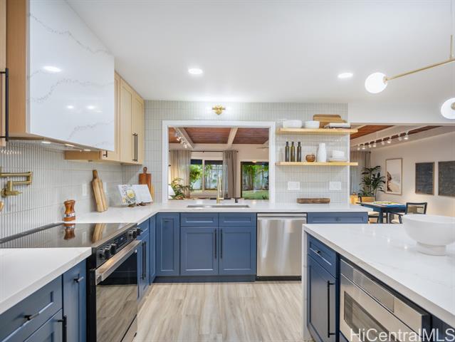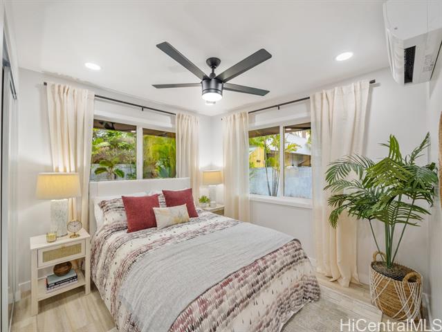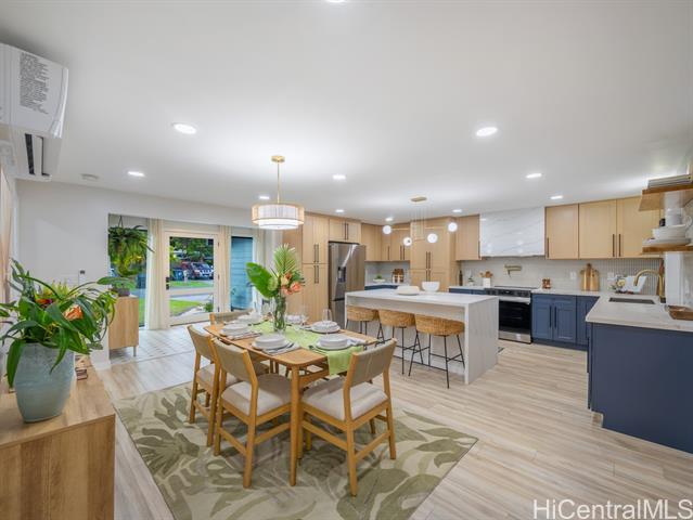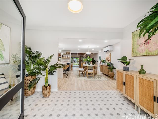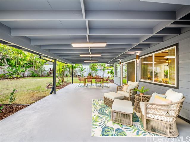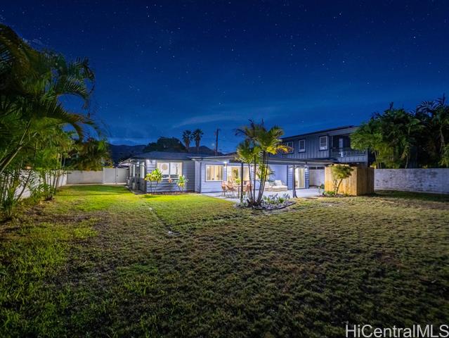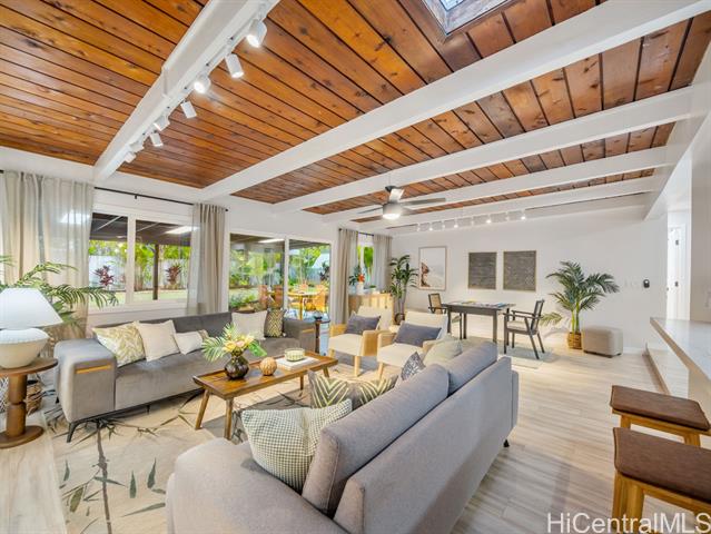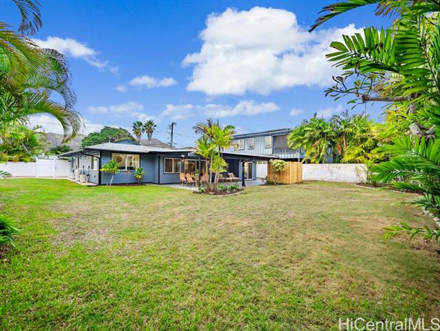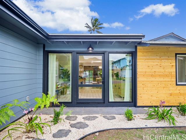 Nestled in the sought-after Koolaupoko neighborhood of Kailua, this fully renovated 4-bedroom, 2-bath home is a picture-perfect retreat. Set on an expansive, flat 8,713 sq ft lot, this property offers endless possibilities—room for an ADU, a sparkling pool, or your own lush garden oasis. Step inside and fall in love with the thoughtful design and high-end finishes that make this home truly move-in ready. From the stunning oversized entry door that warmly welcomes you to the custom hidden pantry and luxurious primary ensuite featuring a soaking tub, every detail has been carefully considered. The open concept layout, open-beam ceilings + skylights invite natural light to pour in, creating a bright atmosphere and the large outdoor covered lanai + tranquil outdoor shower perfect for entertaining or unwinding. Enjoy the convenience of being steps from Kawainui Marsh trail + Kaha Park, as well as a straight shot to the world-famous Kailua Beach, and Kailua town just minutes away, offering endless recreation options, dining, shopping, and more.