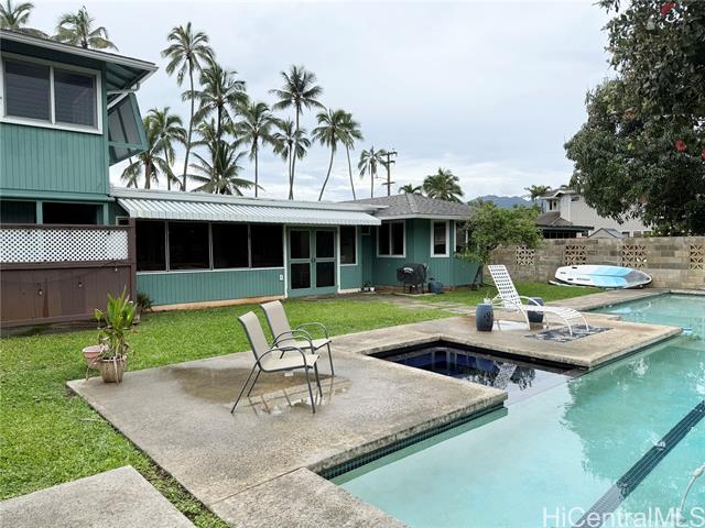 821 and 823 Kainui Drive … A rare opportunity to own a canal front single-family home on a nearly 10,000 sq. ft. R-5 zoned lot, featuring an ohana unit - each with its own utility meters and address - tucked along the peaceful Kawainui marsh side of Kainui Drive, “Duck Road.” The main home offers a spacious single-level floor plan (approx 2,386 sq. ft. of interior living), including 3 generously sized bedrooms, 3 bathrooms, a study, family room, living room, dining area, enclosed lanai, as well as a spacious recreation room/studio with kitchenette and its own private entrance. Upstairs, the 'ohana unit (823 Kainui Dr – approximately 800 sq. ft. interior) includes 2 bedrooms, 1 bathroom, and a covered lanai. Take in stunning sunsets over the Ko'olau Mountains from the multiple tranquil outdoor areas, unwind in the inviting pool and spa, or enjoy a paddle out to Kailua Bay. The possibilities are truly endless.