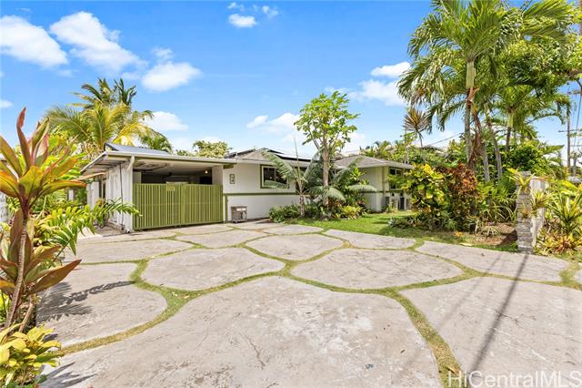 Come see these tropical homes in Kailua! Two separate, legal homes on one lot, which include a 3 bed 1 bath main house and a separate 1 bed 1 bath detached cottage. 8000+ Large lot in Koolaupoko neighborhood. Split AC throughout both houses for those hot summer days. Ceiling fans and plenty of windows to let the trade winds in on the cooler months. Owned photovoltaic to keep your electric bill manageable even if you are running the split AC all day. Front house features remodeled kitchen with stainless steel appliances, granite counters and beautiful ohia post. Additional features added are insulated ceiling, Brazilian walnut flooring, upgraded 200 amp electrical service and roof with ridge vent. Both units have privacy and fenced yards. Backyard has a jacuzzi and surrounded by lush green plants. Great opportunity to live in front home with rental income from back cottage or investor to rent out both. Close to H-3, Marine Corps Base Hawaii, Kailua town and beaches!!
