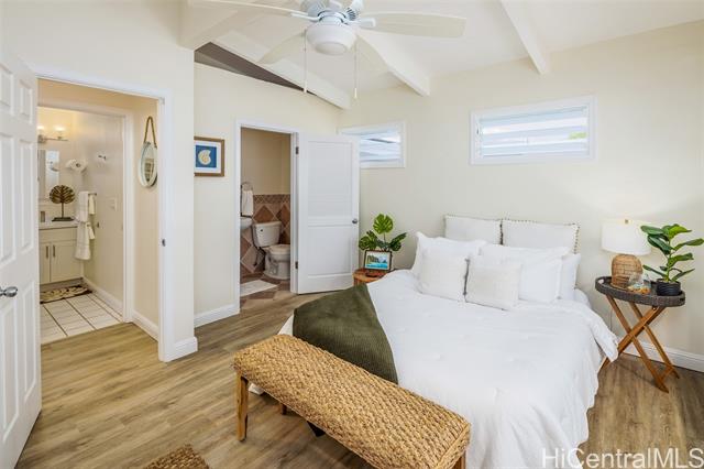 This newly remodeled 3-bedroom, 2-bath attached duplex-style home is a fantastic alternative to townhome or condo living without the association fees and at a great entry price into Kailua! The single-level home comes with its own private, fenced back yard with ample space for pets, gardening, relaxing and entertaining. And what condo comes with its own mango tree producing delicious fruit? A private entry leads to the bright and airy living room, with 12-ft ceilings that add to the spacious feel. Each bedroom has its own split AC unit and extra storage above the closets. Upgrades include new roof and flooring, beautiful plantation shutters, new paint and stainless-steel kitchen appliances. This quiet neighborhood is a best-kept secret, adjacent to Adventist Health Castle and the YMCA, and with easy access to the highways. Cut 10-15 minutes off your morning commute by skipping the Kailua Town traffic, and get straight on the Pali Highway just down the street! On Sunday mornings, nearby Adventist Castle plays host to the popular Kailua Town Farmers Market, where you can stock up on fruits & vegetables, enjoy prepared foods and shop at local vendor booths. "Lucky We Live Kailua!"