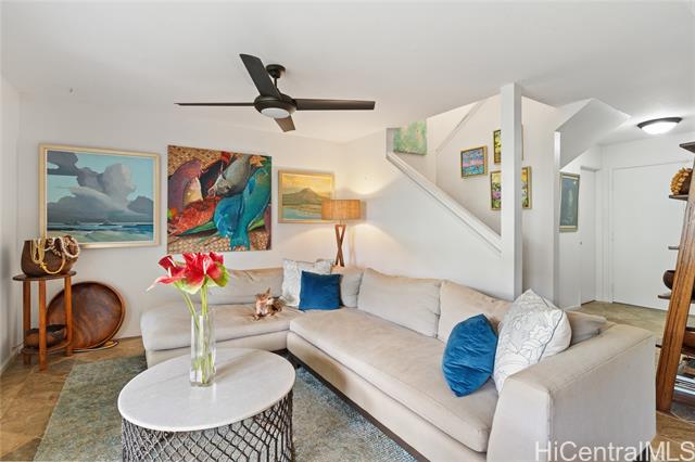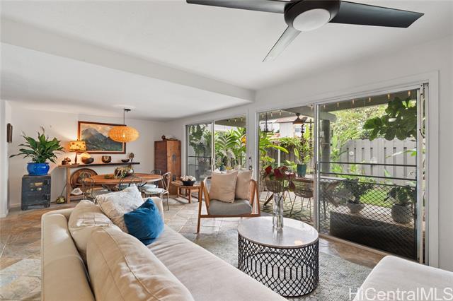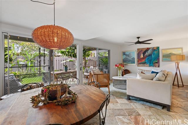 Discover this beautifully updated four-bedroom, two and a half-bath townhome in the highly desirable Kukilakila community on Enchanted Lake in Kailua. Open concept indoor/outdoor living space. Thoughtfully remodeled throughout, this home features new flooring, a fully upgraded chefs kitchen, new bathrooms, and an expanded chef’s kitchen with a dedicated office space—perfect for remote work or study. Large two car garage with room for 2 more parking in the driveway (rare in this complex). Currently, the wall between bedroom 3 and 4 has been removed but could easily be put back. Enjoy indoor-outdoor living with a spacious private lanai, grassy yard for your pet, and attractive landscaping ideal for relaxing, dining, or entertaining. Located just minutes from Kailua Beach, shopping, dining, and the best of Kailua’s lifestyle, Kukilakila also offers walking paths, a community pool, and peaceful lakeside living. A rare opportunity to own a move-in ready home in the heart of Kailua. Priced to SELL QUICKLY!