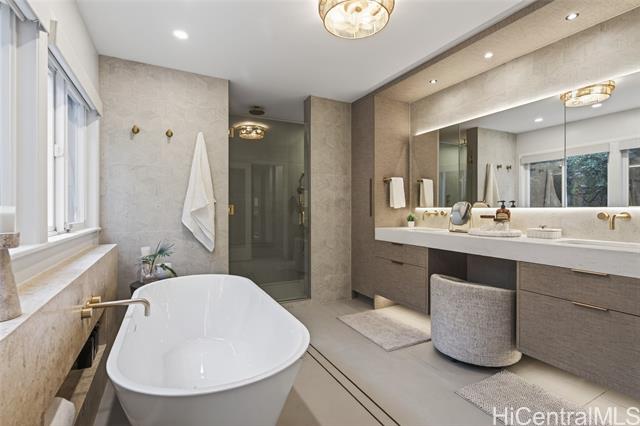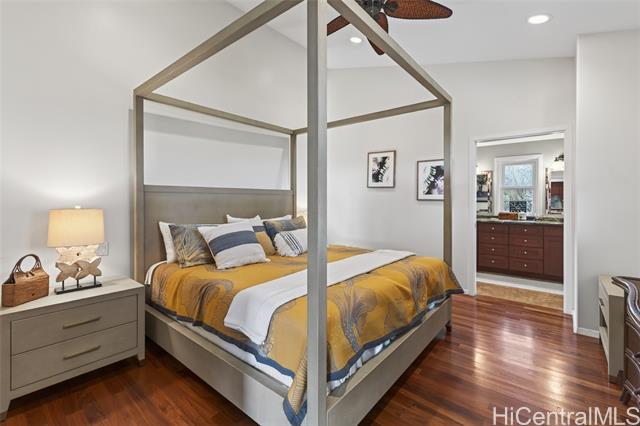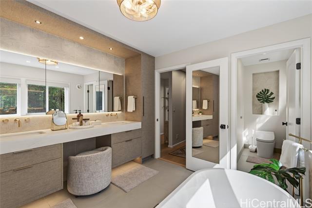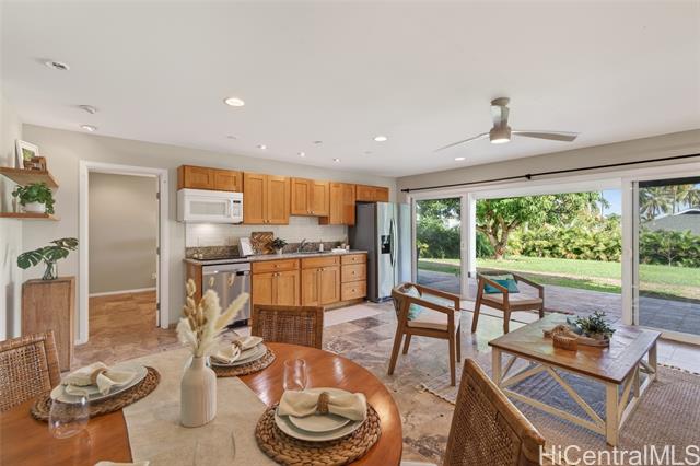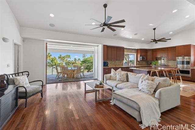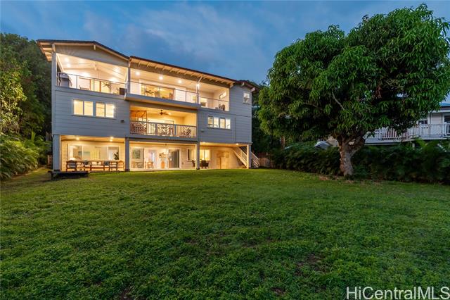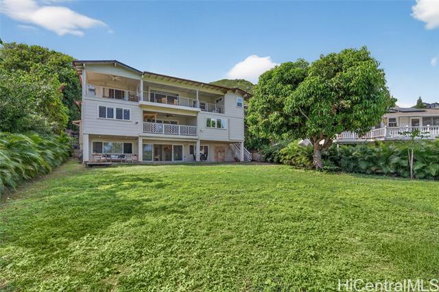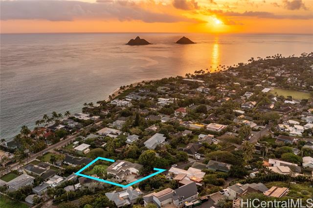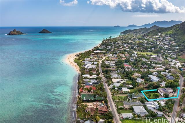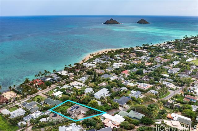THIS ONE HAS IT ALL! Ocean views, large level lot, over 5,300 square feet of flexible multi-generational living, and just a stroll to world-famous Lanikai Beach - all under $1,000 per square foot. 33 Solar panels. Designed to live as one refined estate or up to three independent residences, the home is ideal for multi-generational living, guests, or extended family, with separate entrances and parking. The main residence spans over 3,000 square feet with five bedrooms and four baths, high ceilings, hardwood floors, granite finishes, and two expansive decks capturing island and ocean views. Additional spaces include a light-filled studio with its own deck and a separate lower residence with two bedrooms, generous living areas, and seamless indoor-outdoor flow. A rare, expansive level backyard offers exceptional privacy and includes plans for a swimming pool. Solid concrete construction, a peaceful Aalapapa-facing orientation, updated landscaping, and a full second-floor remodel finished in 2025 complete this extraordinary offering.