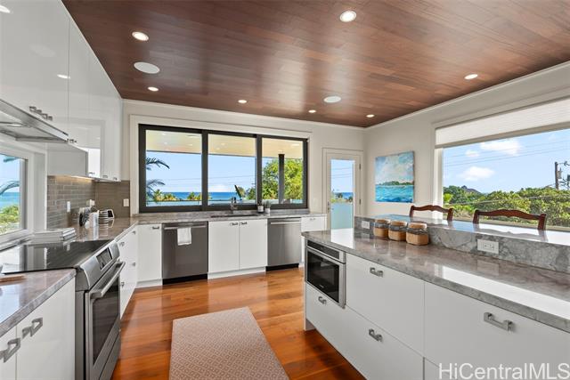 This stunning home is ready for you to live the ultimate Hawaii paradise lifestyle in the gorgeous community of Lanikai. Do not miss the opportunity to reside in this impeccable custom-built 4 bedroom 3.5 bathroom beauty! Built brand new and finished in 2018, the upper level showcases a chef’s kitchen and an open-concept living space that seamlessly extends to a spacious lanai, offering breathtaking ocean views—ideal for hosting or simply unwinding. This home features not one, but two luxurious primary suites, each with spa-inspired bathrooms and soaring windows that flood the space with natural light. High-quality materials were used, including marble countertops and gorgeous Walnut hardwood and Travertine floors throughout. The best part is that you’re just a short five-minute stroll from the pristine sands of both Kailua Beach and Lanikai Beach!