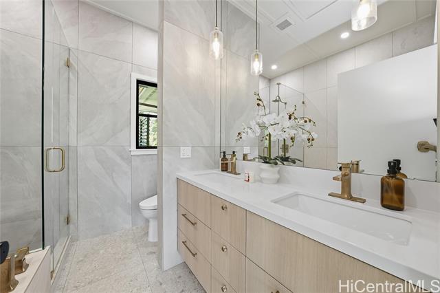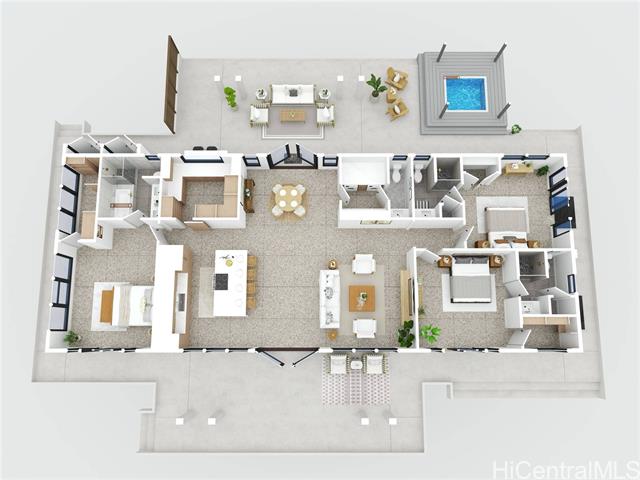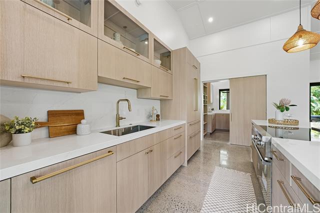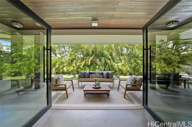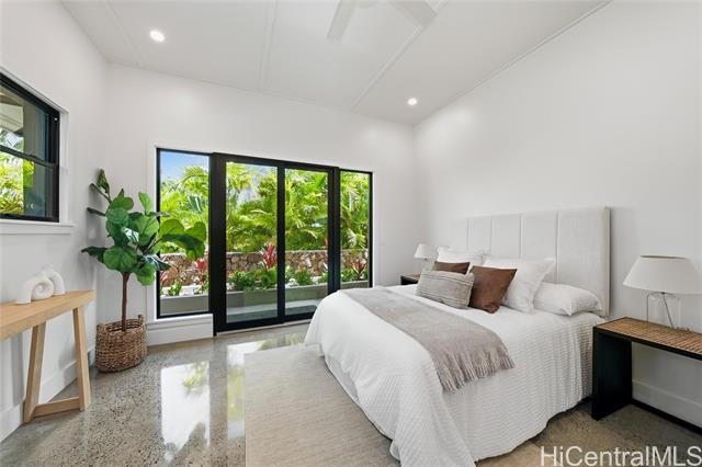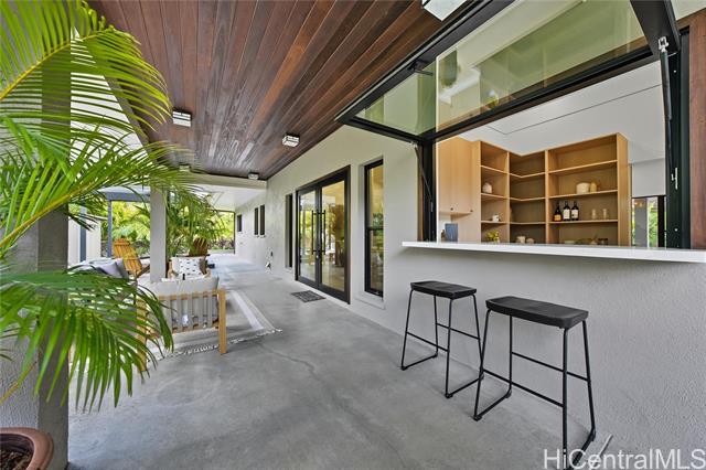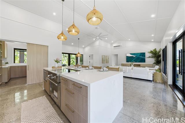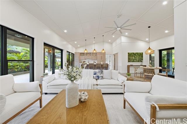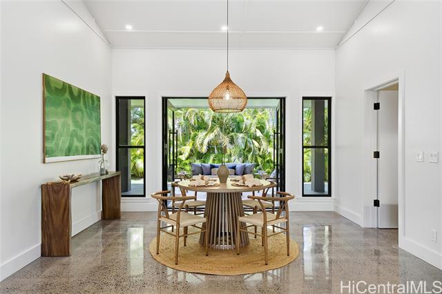 Just one block from iconic Lanikai Beach, this 2025 fully remodeled luxury retreat pairs timeless elegance with cutting-edge design. Built from concrete and steel with hurricane-rated Marvin doors and steel trusses, it offers exceptional strength and style. Inside, soaring ceilings, designer finishes, and walls of glass create an airy, light-filled sanctuary. The gourmet kitchen features premium appliances, custom cabinetry, and flows seamlessly into expansive living and dining areas. Three generous ensuite bedrooms offer privacy and comfort, complemented by a fourth powder room with integrated laundry. Over 1,200 sq. ft. of covered outdoor living invites year-round enjoyment, framed by lush tropical landscaping and a custom-built hot tub. Thoughtfully curated lighting, high-end fixtures, and engineered hardwood floors elevate the interiors. Smart home integration offers effortless control of climate, security, and lighting. Enjoy sunrise views of the Mokulua Islands, sunset cocktails in your private yard, and the serenity of one of Hawaii’s most prestigious beachside communities. A private auto court completes this rare offering of modern island luxury.