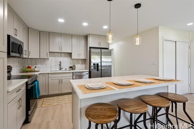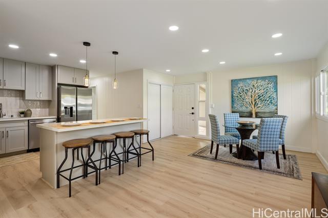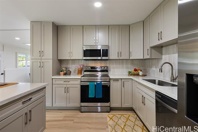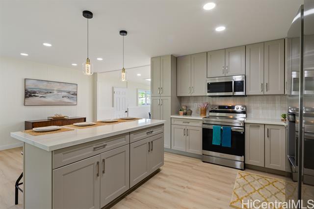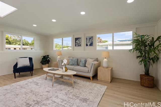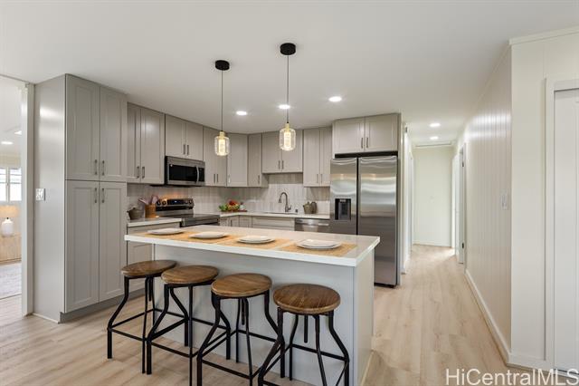 Newly renovated single level home in tranquil Pohakupu, Kailua neighborhood. This charming 3 bedroom/1 bath home features an open concept with modern touches: a beautiful kitchen with new cabinets, quartz countertop, an Island and new kitchen stainless steel appliances, new flooring throughout with luxury vinyl planks, new bathroom, new double paned windows, new double paned sliding door, new washer and dryer, and new paint in and out etc. Situated on spacious 7,520 sq.ft. of level land, this move-in-ready home has extraordinary potential for future expansion. Conveniently located within minutes to Kailua Town with an array of shops and restaurants, the famous Kailua and Lanikai Beaches, hiking trails and many more, this is truly an ideal place to enjoy a Hawaiiana lifestyle!