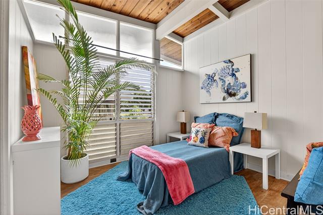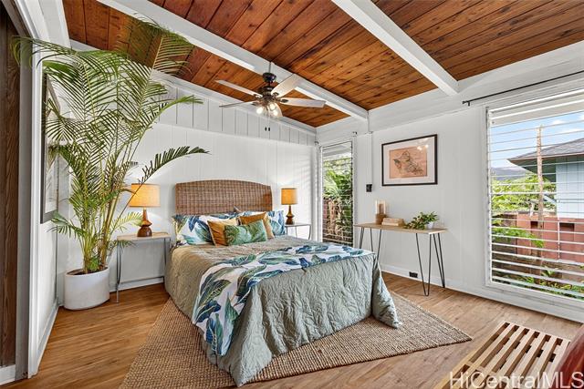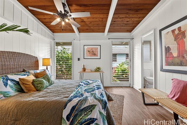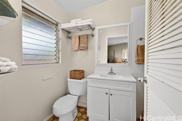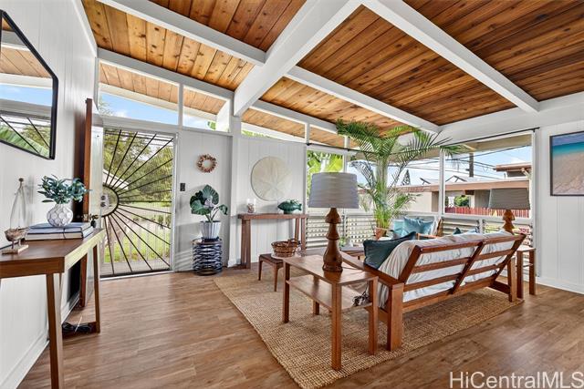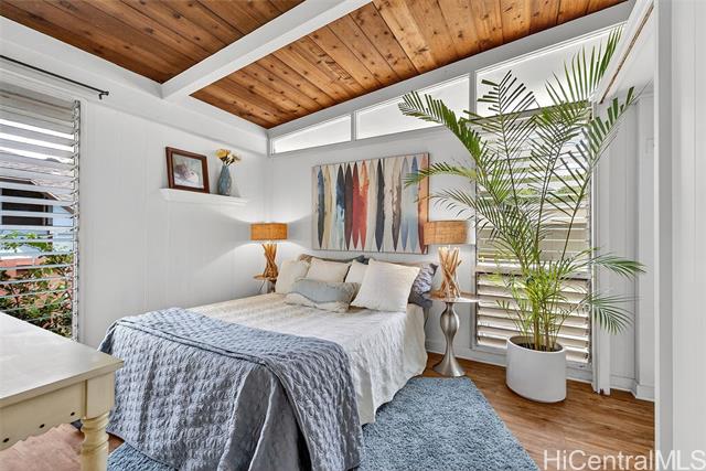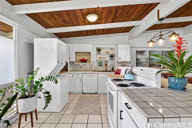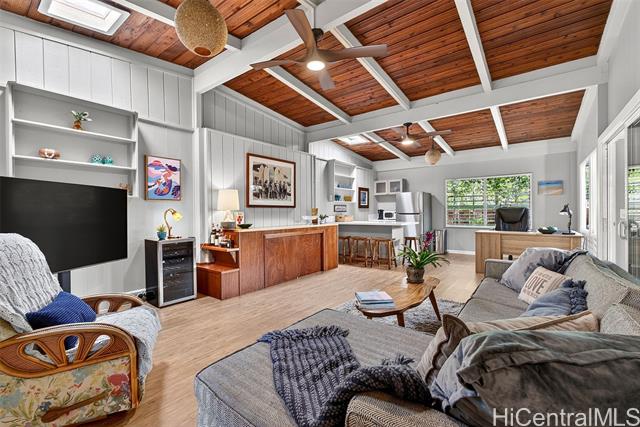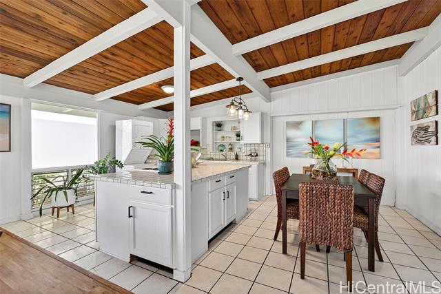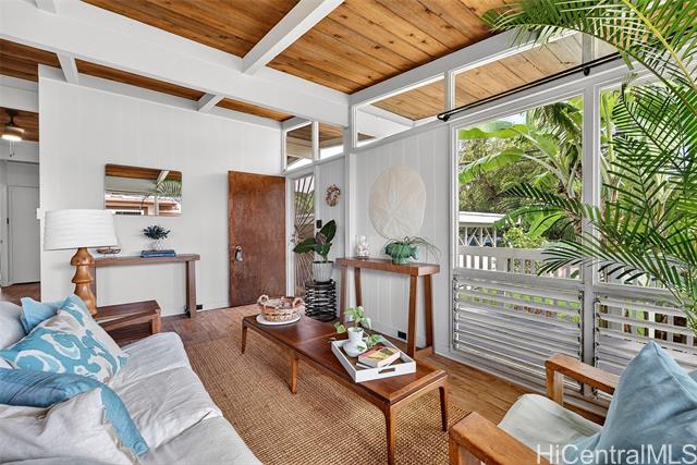 Relaxed Waimanalo living, near the beach and with stunning Ko'olau Mountain Range vistas! Adorable Mid-century Kama'aina style home, with vaulted ceilings, abundant light, and new exterior paint. Many fruit trees and flowering shrubs on property, a gardener's delight! Single-story home, 3-bdrm, 1.5-bath with high ceilings and nice breezes. There's an additional attached remodeled rec room, with its own bedroom, walk-in closet, and remodeled bathroom/bar area. Use together for a 4/2.5 or separately as a home with a guest suite or rental. Total is 1640 SF. Property also includes another semi-detached 1-bdrm, 1-bath, 510 SF permitted cottage. Could possibly be turned into ADU? Buyer to verify. Perfect property for multi-generational living. As a bonus, each living area has its own private outdoor space. 2 combo W/D units for laundry on property. This is very close to Kailua, at the entrance of Waimanalo. <3 mi to Keolu Kailua Safeway. Great 1031 exchange property or starter home with help for the mortgage. Main 3/1.5 was rented for $3500, including utilities. The other two areas (cottage & rec/BR/BA were not rented and used by owner). Amazing opportunity at this price.