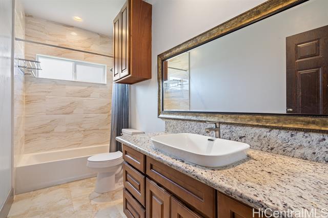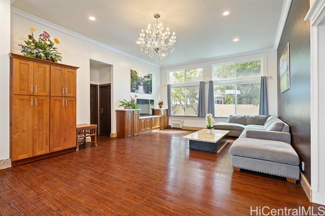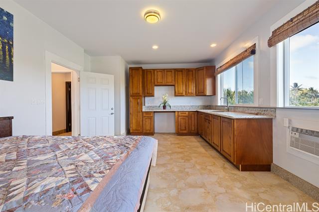 Rare opportunity with great potentials, for either own family living or rental investment, easy to afford mortgage! Located only a few houses away from world-famous Waimanalo white sand beach! Ideal for own living to enjoy lots of space in highly desirable beach neighborhood. 5704sf living space, 6 private entrances on 11,250sf lot. This 2-story house, 3811sf was newly built in 2015. Plus 1-story Ohana unit, 1893sf. This gated & spacious property offers 11 bedrooms, 8 full bathrooms, idyllic office space. Stunning, unobstructed Ko’olaumountain views. Total of 2 kitchens, 2 wet bars and plus. Huge sizes for all living rooms, kitchens, bedrooms, etc. 11ft tall ceiling for main living room; 9ft tall for other areas. Tons of upgrades: lanai, auto metal gate, natural stones, metal roof, solid wood cabinets & double-door entries, hardwood floor, granite & quartz countertops, Quartz staircase, etc. If for rental, since so close to beach, high rental demands paying good price to generate good incomes.