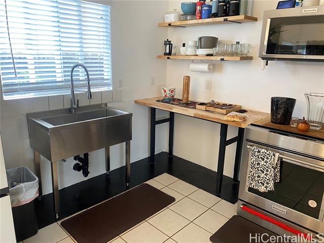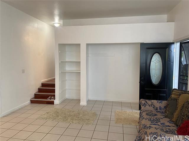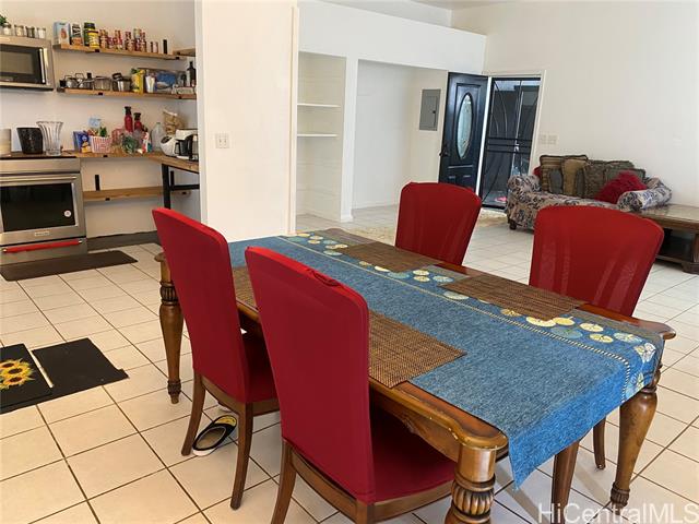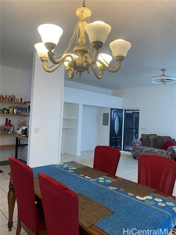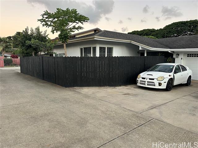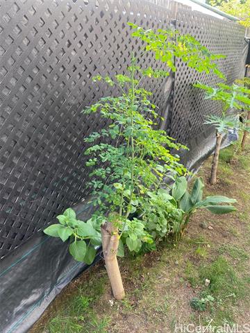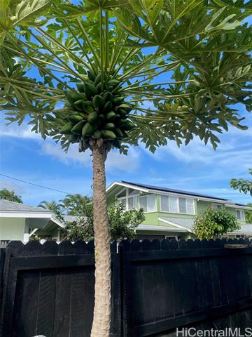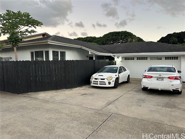 Prime Waimanalo location! Sparkling split level detached home with 2 car garage close to Kalanianaole Highway, town, and beach. Built in 2001, Hihimanu Estates 3 bedroom, 2 bath Fee Simple beauty with comfortable 243 sq ft covered lanai! Attractive ceramic tiled living room, dining area and kitchen, all with 10 foot high ceilings. Distinctive wood laminate flooring in the bedrooms. Fenced yard features fruit bearing trees including Thai papaya, calamansi, malungay, guava, pomelo, soursop, oregano, bittermelon, ginger, and lemongrass. Lovable home that shows beautifully!
