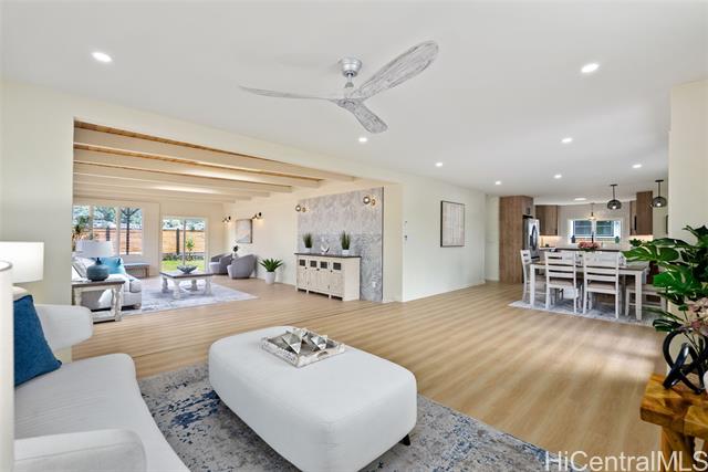 Located in the beautiful, lush and desirable Ahuimanu neighborhood, this completely renovated 4-bedroom, 2-bathroom property is surrounded by the Koolau Mountains. It is conveniently located close to Kaneohe Bay, Kaneohe Town, Windward Mall, freeways and a great start to a round island tour of Oahu. This home features a bright open layout, tiled kitchen walls, skylights, neutral color tones throughout, double door entry, all new appliances, new roof, new driveway and so much more. With a nice spacious backyard, imagine yourself enjoying the sunsets and mountain views. Make this home yours and start appreciating everything that this home has to offer.