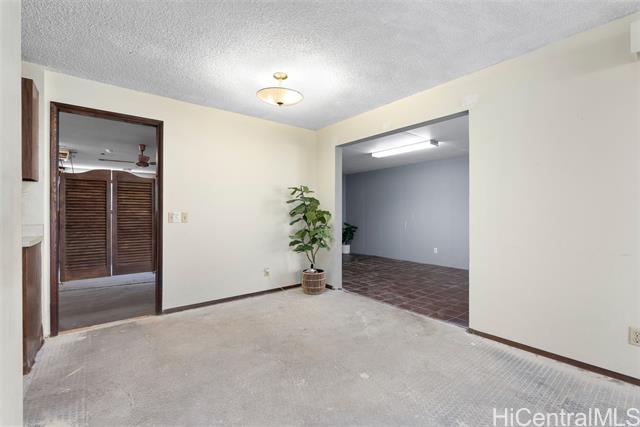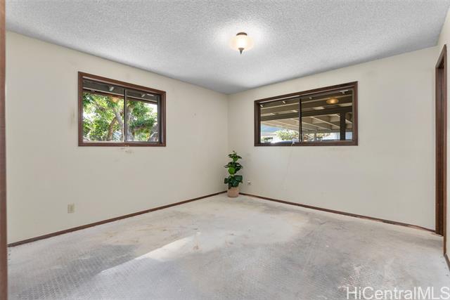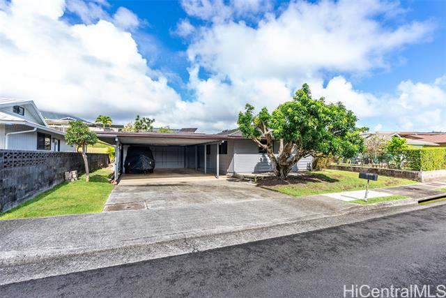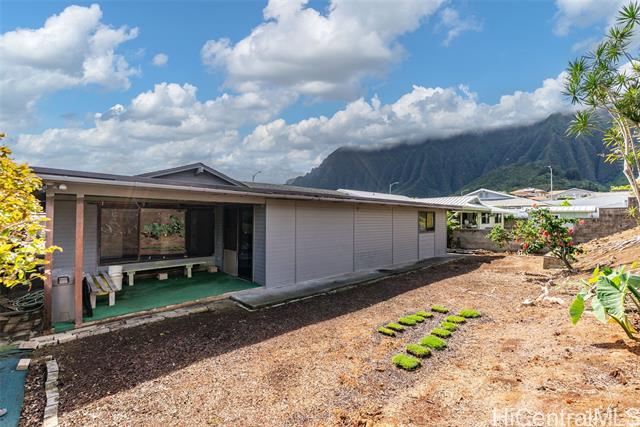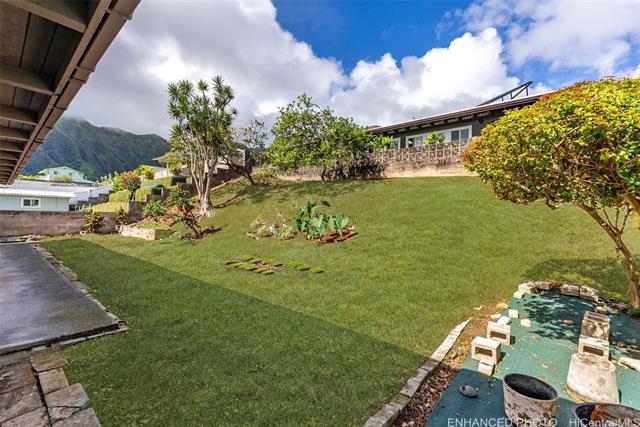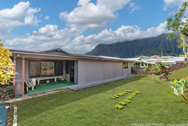 Single level home in a cul-de-sac in Ahuimanu on Windward Oahu! Expansive 3-bedroom, 2-bathroom home offers 2,056 sq. ft. of comfortable interior living space, 2 car enclosed garage, and an oversized carport. This is a perfect opportunity for those with vision and is ready for your personal touch. Floorplan includes spacious living areas, a bonus room ideal for an office or workshop, abundant storage, an additional den, and a covered patio for grilling, entertaining, and relaxing. With breathtaking views of the majestic Ko'olau Mountain Range and a generous 6,977 sq. ft. lot, this property is a peaceful retreat with its multiple fruit trees including a mature lychee tree. The expansive outdoor space offers endless potential for creating your ideal garden or private retreat. The home was fumigated earlier this year. Just minutes from Kaneohe Bay, shopping, dining, and excellent schools. Centrally located with easy access to H-3, Pali, Likelike highway, commuting to Honolulu, Pearl Harbor, or the airport. Must see! Bring your creativity and style to make this home truly your own. 5 photos are enhanced.