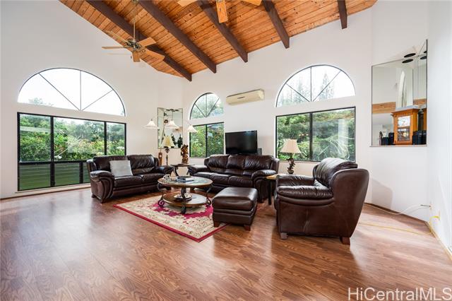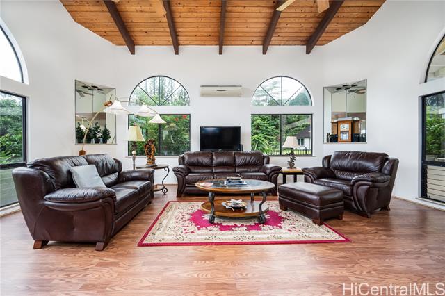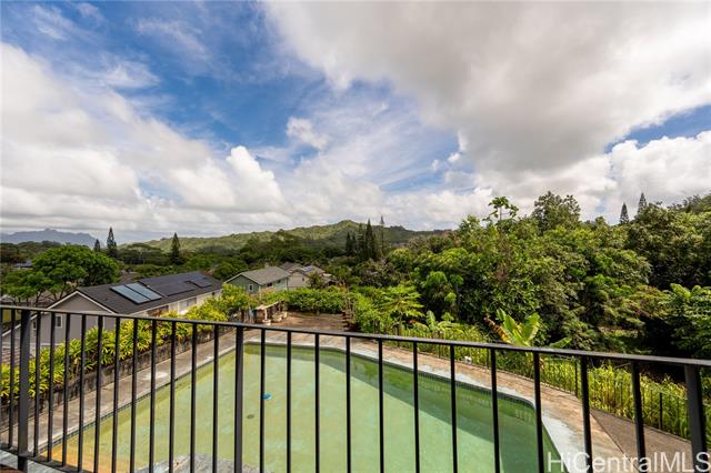 Enjoy the Serenity! Ahuimanu Hills Rarely Available Home located at the base of the Majestic Koolau Mountains. Custom Built 7 Bedroom Home with 5 Full Bathrooms, includes attached 2-bedroom, 1 bath suite with wet bar. Also features a swimming pool and deck, comfy fireplace, two living areas, nice spacious kitchen, on a lush, landscaped lot with lots of fruit trees and generous parking. Being Sold "As-Is".