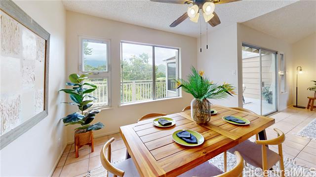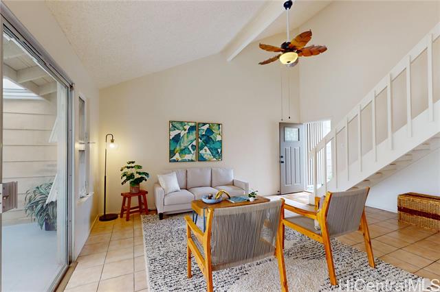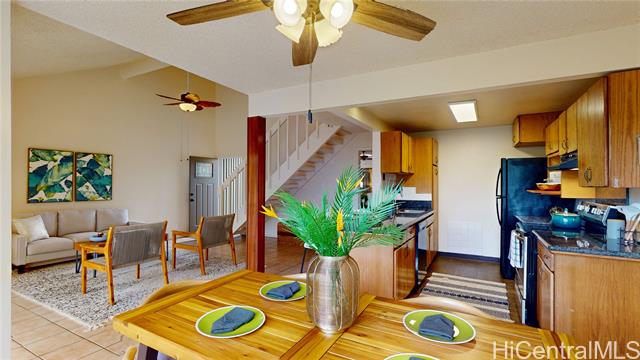 Homes in ALII CLUSTER PARK are seldom available and this 4-bedroom, 2-bath unit is a rare gem. The last sale of a 4-bedroom unit was over ten years ago, and the most recent neighborhood sale was in 2023. This a spacious and comfortable two-story townhome with views of the majestic Koolau Mountains from its screened-in back lanai. The primary bedroom with en-suite bathroom is on the 1st floor; 3-bedrooms and a full-bathroom are upstairs. A previous owner expanded the primary bedroom, setting it apart from similar units. The attached two-car garage with remote-controlled door offers ample room for additional storage. Recent 2025 renovations include new luxury vinyl plank flooring on the second floor, an updated upstairs bathroom, new toilets, and fresh interior paint throughout. Additional features include vaulted ceiling, ceramic tile, solar hot water, and washer and dryer with a utility tub in the garage. While it’s move-in-ready, there are still opportunities for new owners to apply their personal touches and make improvements. It's in close proximity to Kaneohe amenities like shopping, dining, schools, Heeia Kea Pier, Kaneohe Bay, and more.
