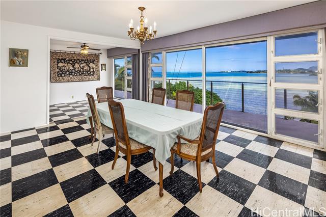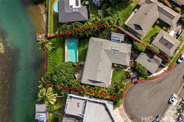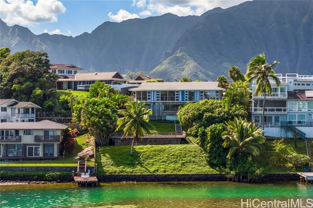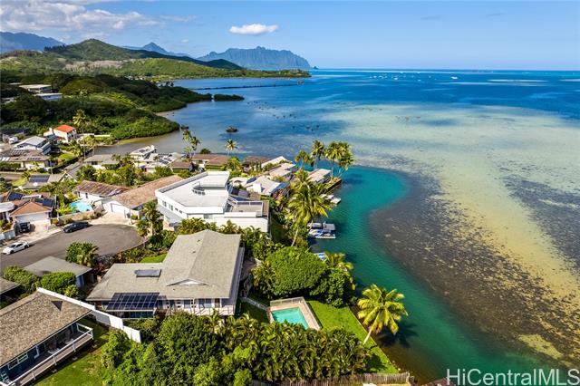 Extraordinary opportunity to own your own deep channel waterfront treasure in Hawaii’s most coveted sailing Bay. This spacious 4 bedroom 3 bath home sits on a generous 14,767 foot lot at the end of a quite cul-de-sac, offering privacy and tranquility. Enjoy the breathtaking views of world-famous Kaneohe Bay, where sailboats glide across turquoise waters and the iconic sandbar beckons for adventure. Excellent set up for entertaining and hosting unforgettable gatherings with a garden lanai with stunning Koolau mountain views and 2 swimming pools. One large pool with deck, and a second heated exercise lap pool under a shaded cover for exercise. Spacious lower floor bedroom and living area with separate entrance and kitchenette for flexible living arrangement. The ultimate island lifestyle: Sail across the bay or paddle your canoe through calm waters. Enjoy stand-up paddling right from your backyard. Visit the famous Kaneohe Sandbar for picnics, parties, and unforgettable recreation. Don’t miss your chance to own this rare waterfront gem!