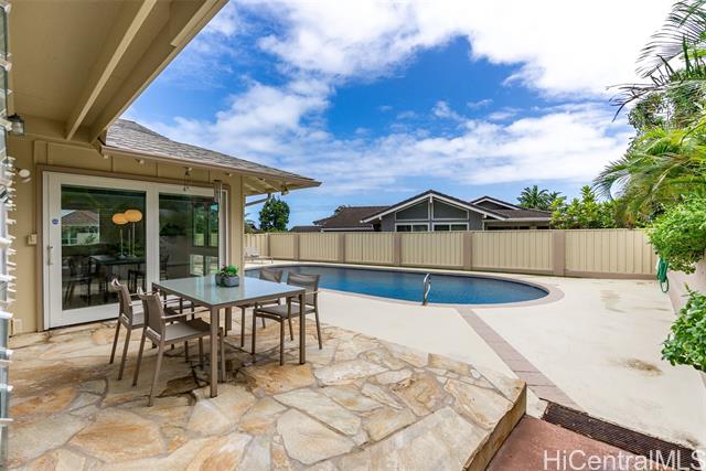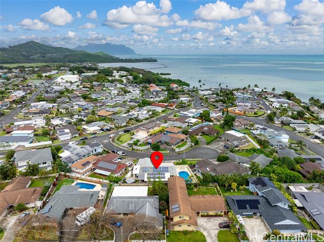 Rarely available in the highly sought-after Alii Shores neighborhood of Kaneohe, this move-in ready single-level 3bd/2ba home showcases pride of ownership and a lifestyle designed for effortless island living. Freshly painted inside, the home welcomes you with a bright interior featuring a renovated kitchen, updated bathrooms, and new Pella sliding doors and windows. Large-format vinyl jalousie windows invite cool trade winds throughout, creating seamless indoor-outdoor living. Step outside to your own private backyard oasis with a beautiful tiled pool, resurfaced deck, custom gazebo, and low-maintenance turfed yard, perfect for relaxing afternoons or entertaining guests. Additional highlights include 30 owned PV panels for improved energy efficiency, a quiet cul-de-sac location, and ample parking. Ideally situated near shopping, dining, and everything Kaneohe has to offer, this home provides the perfect balance of comfort, convenience, and island lifestyle. Don’t miss the chance to own this exceptional property in one of Oahu’s most desirable communities.