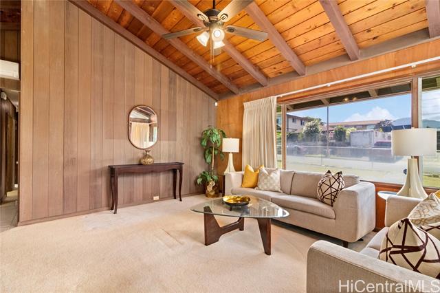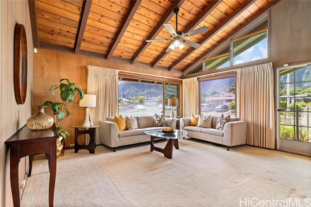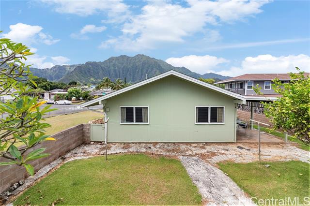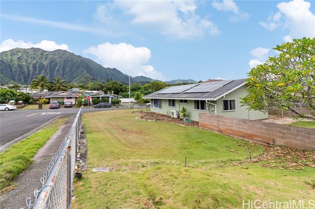 Experience the peaceful and timeless lifestyle of Hawaii in this 3-bed 2-bath single level home on a large corner lot! Located in the desirable Crown Terrace neighborhood of Kaneohe, this is a quiet street with no through traffic. Functional floor plan with large picturesque windows in the living area allow for lots of natural light from the sunshine and beautiful views of the Koolau Mountain range. This well cared for home features an updated kitchen and bathrooms, split AC and 20 owned Photovoltaic panels with NEM to save costs on electricity. The big yard gives you lots of options to expand, garden, or use with your family and pets!!! This home is ready for a new owner that will love and care for it the way the first owner has!