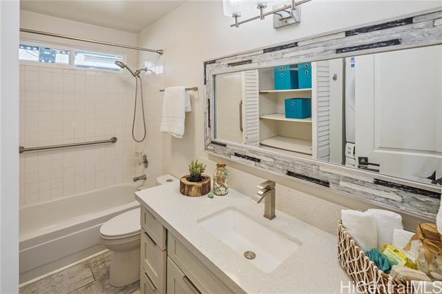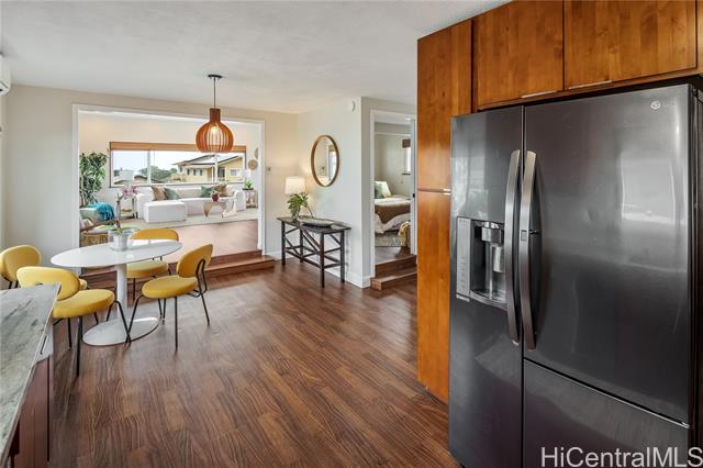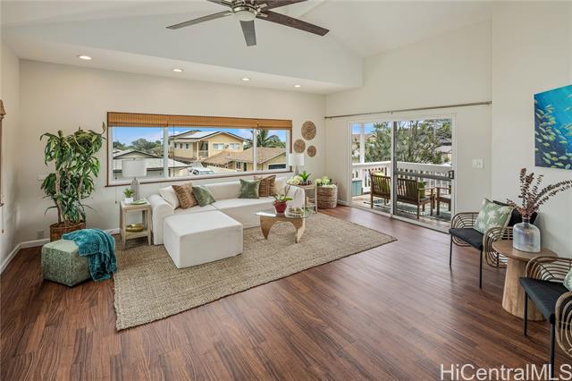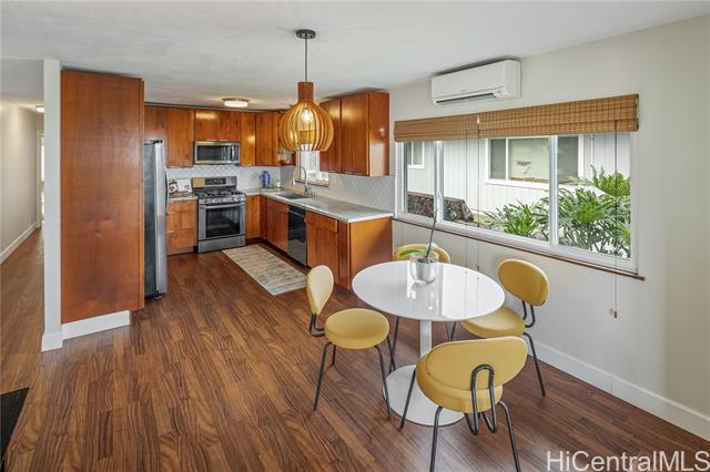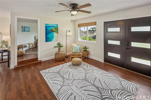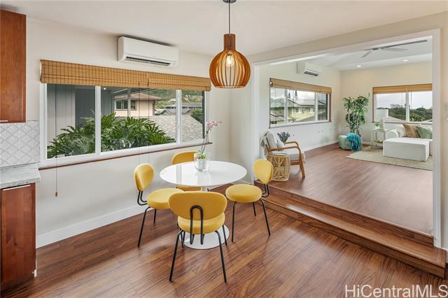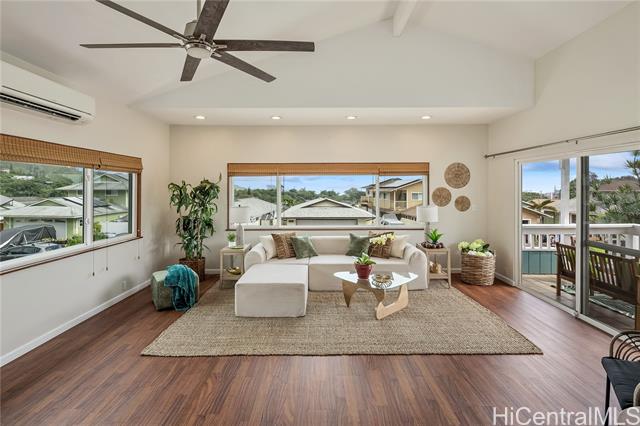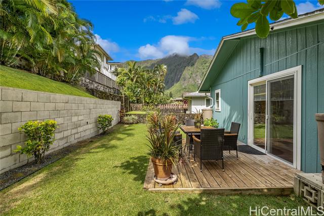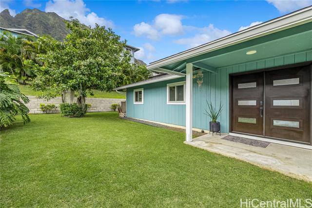 This beautifully remodeled single-family home in highly desirable Kaneohe blends modern comfort with the natural beauty of windward Oahu. Featuring 3 bedrooms and 2 bathrooms, this residence offers a spacious open floor plan with soaring cathedral ceilings, creating an airy, inviting atmosphere perfect for relaxing or entertaining. Savor stunning mountain and ocean views from multiple vantage points throughout the home. The upgraded interior includes vinyl plank flooring, 5 split ACs, ceiling fans, renovated kitchen & baths and thoughtful finishes that add both style and durability. Enjoy impressive energy savings with the 27-panel owned photovoltaic system, making island living more efficient and sustainable. Step outside to a landscaped, fully fenced backyard—ideal for gatherings, gardening, or simply unwinding in your private outdoor retreat. Located in the heart of Kaneohe, this home provides unmatched convenience with quick access to highways, shopping, restaurants, and all the best amenities the area has to offer. A rare opportunity to own a move-in-ready home in one of Oahu’s most sought-after communities—come experience the charm and comfort for yourself!