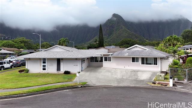 Rare opportunity to own a large 7-bedroom, 5-bath home nestled in the highly desirable Haiku Village neighborhood on the Windward side of Oahu. Boasting 2997 sq ft of living space on a 7504 sq ft lot, this property sits at the corner of a private cul-de-sac and offers panoramic views of the majestic Koolau mountains. Two separate entrances allow for flexible living options ideal for multi-generational living, entertaining or creating rental potential. The 4-bedroom/3-bath addition was completed in 2018 and features vinyl flooring throughout, stainless steel appliances, updated bathrooms and generous sized bedrooms. The front portion of the home is original, has an open floor plan with 3-bedrooms/2-baths, and needs updating. With vision, creativity and effort, this space has incredible potential! Enjoy the peace and convenience of Kaneohe living - close to the shopping mall, businesses, restaurants, schools, parks and easy freeway access. Opportunities like this in Haiku Village are rare - come make this one your own! Property is being sold as-is.