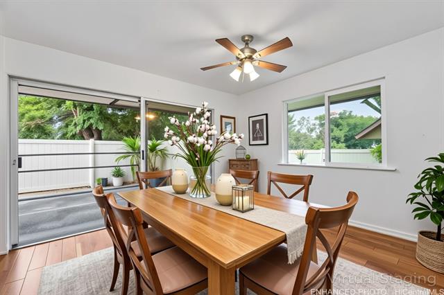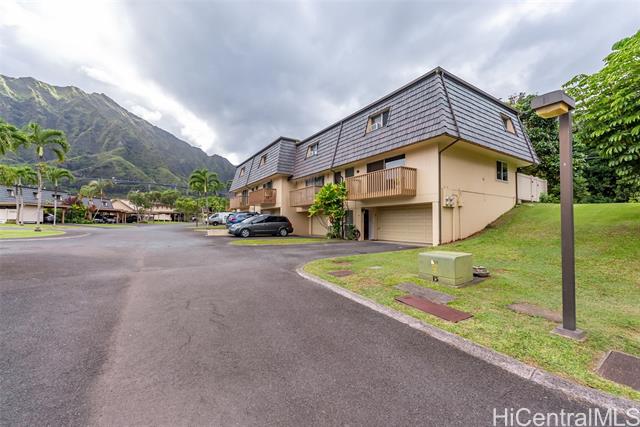 Welcome home to this beautifully maintained 3-bedroom, 2.5-bath townhouse in a peaceful Kaneohe community. Enjoy stunning views of the Ko'olau Mountains and the relaxed Windward lifestyle, surrounded by lush greenery and friendly neighborhood chickens that add a touch of local charm. Inside, you’ll find a spacious layout featuring hardwood and laminate flooring throughout the living areas, tiled bathroom floors, and freshly painted walls. The spacious two-car garage offers ample storage, and the private courtyard is perfect for relaxing or entertaining. Residents enjoy access to a community center and a convenient location just minutes from dining, including Haleiwa Joe’s, as well as shopping, schools, and freeway access. Easy routes via H-3 and Likelike offer a quick commute to Pearl Harbor, Hickam, and Kaneohe Marine Corps Base Hawaii. Don’t miss this opportunity — schedule your private showing today! (One or more photos are enhanced)