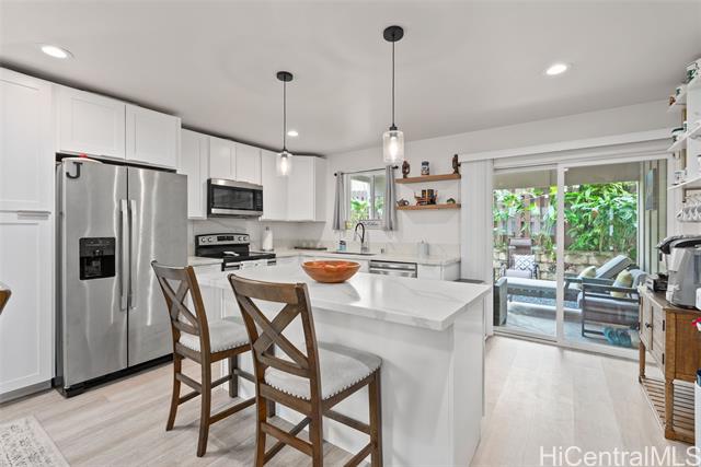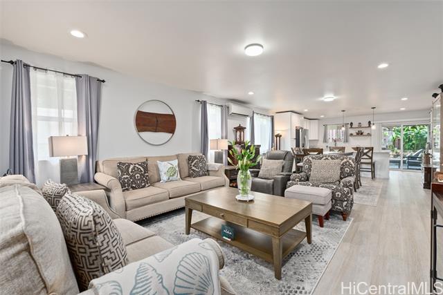 Welcome to this modern immaculately maintained luxury residence, positioned at the end of a quiet cul-de-sac offering refined design, privacy and contemporary comfort. This home features a modern spacious kitchen with stainless steel appliances, quartz countertops, and plenty of space for dining and entertaining. The living room flows seamlessly from the kitchen and dining area to create an open and inviting space for everyday living and enjoyment. The residence features 4 generously sized bedrooms, also a versatile suite with a private entrance, full bath and kitchenette - ideal for extended family, guests or rental option. There are six new split A/C systems for enhanced comfort. The backyard area offers a welcoming outdoor space designed for relaxation, and outdoor gatherings. Don't miss the opportunity to own this home nestled in the heart of Kaneohe minutes from Windward Mall, theaters and restaurants. Close to H-3, Marine Corps Base Hawaii, Camp Smith, Hickam Air Force Base and Pearl Harbor. FIRST OPEN HOUSE, January 18th, 2-5pm. SEE VIDEO LINK