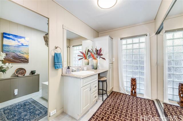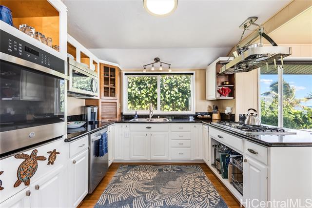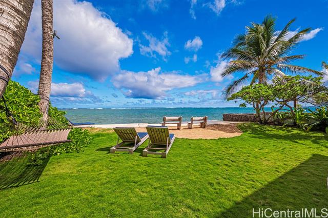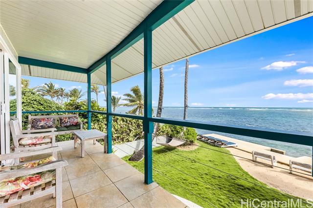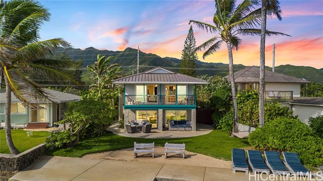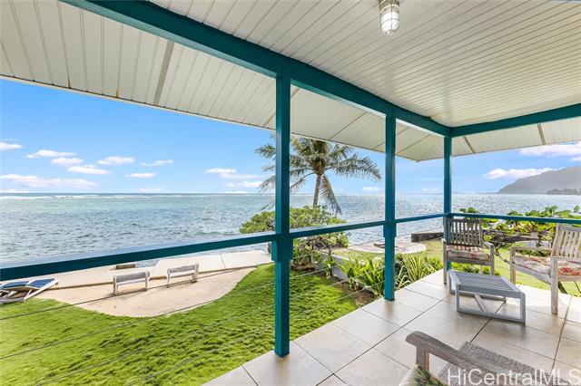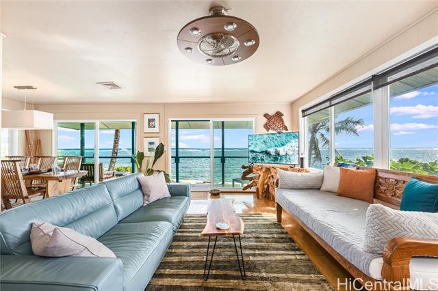 Oceanfront (occasionally beachfront) home, across from Sacred Falls in beautiful Punaluu. This immaculate home offers 4 bedrooms, 3 baths with 2 primary suites, one on the ground floor and the other on the second floor, with separate entrances. Rent the upstairs and keep the downstairs suite for yourself. Or enjoy the home and rent out the 1 bedroom downstairs for extra income. Relax and enjoy the beautiful, clear views of the beach, ocean, and Ko’olau Mountain Range. Take a stroll on the sandy beach and dip in the clear blue waters of Punaluu. This is a great beach house for snorkeling, kayaking, surfing, fishing, swimming, and or just relaxing. Punaluu is known for its beauty and slow pace of life. The home is fully decorated with beautiful art, quality furniture, kitchenware, and linens, so it's ready for you to enjoy and can be included in the sale. The area feels and looks like the coastline of Tahiti. Come live the relaxing and simple life Punaluu has to offer! The home has a sea wall with stairs allowing you ocean access and peace of mind. Paradise awaits you and your family!