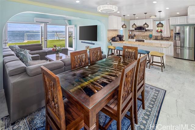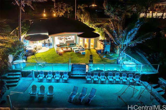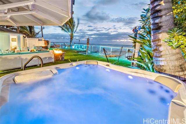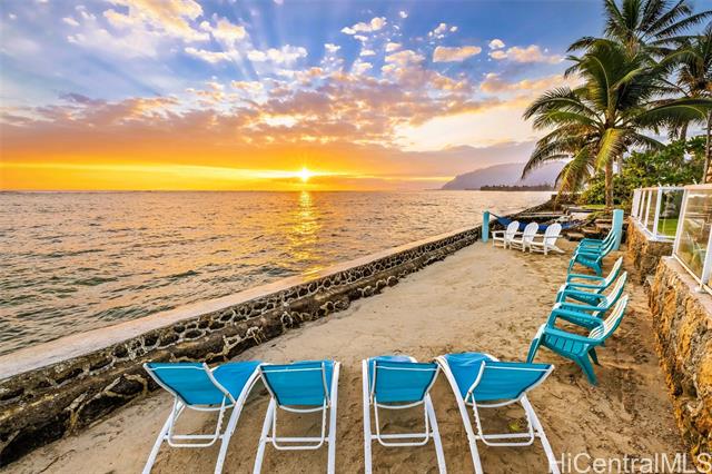Experience an iconic, single-level, fully remodeled, ethereal corner BEACHFRONT estate with extremely high rental revenue, matching homes that have sold for over $24M on Oahu. This landmark location is protected by a grandfathered oceanfront seawall enclosing a private natural sand beach that makes this home a one and only. Relax in Kalaipaloa Point's largest oceanfront lot with panoramic mountain views of Sacred Falls & the Jurassic Park movie set, just 10 minutes from the Ritz Carlton, Kualoa Ranch and PCC, the #1 voted attraction in Hawaii. Your private zen sanctuary primed for indoor-outdoor entertaining is a turnkey multigenerational legacy home with 100 linear ft of ocean frontage that blends timeless Aloha with top-tier modern aesthetics. Enjoy your soul rejuvenating private beach area and grassy manicured laws with front-row access to waist-deep-reef-protected waters perfect for snorkeling, kayaking, fishing, turtle watching, swimming, 3 beachfront jacuzzis, 2 hot-water outdoor showers, gazebo with electrical outlets, Wolf appliances, 4-layered soundproof walls, home theater, solar PV, generator, attached garage, coral rock walls & smart glass fence with dancing LED lights.