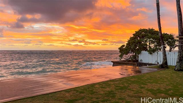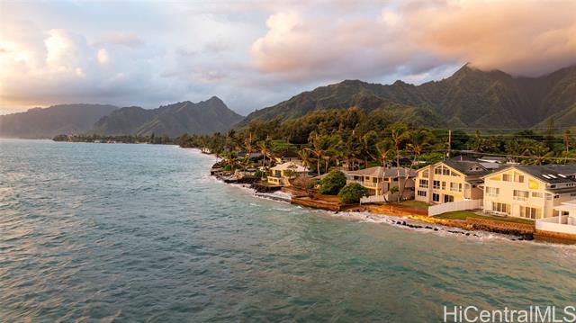 Experience the ultimate in oceanfront living on Oahu’s east side. This stunning 4-bedroom, 4-bath residence blends modern elegance with island charm, showcasing panoramic ocean and mountain views from nearly every level. Thoughtfully remodeled in 2019, the home offers a flexible floor plan with multiple living spaces: a spacious recreation room with separate entry and bath on the first floor, a light-filled main living area and chef-inspired kitchen on the second, and a serene primary suite with loft/office retreat on the top level. High-end finishes, and tasteful furnishings create a refined yet welcoming atmosphere. Step outside to enjoy direct water access, gentle trade winds, and endless sunrises over the Pacific. Built in 2003 with updated amenities and stylish design, this rare oceanfront gem delivers the perfect balance of sophistication, comfort, and the relaxed pace of island life. An exceptional opportunity to own a piece of paradise in Hauula.