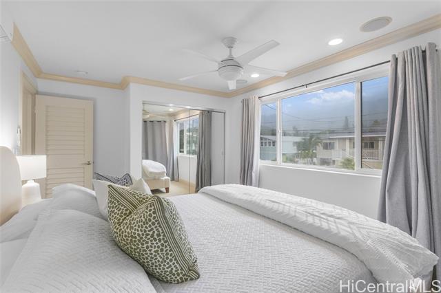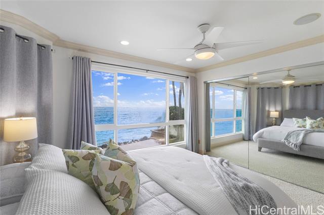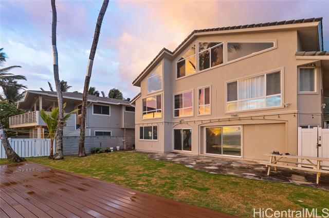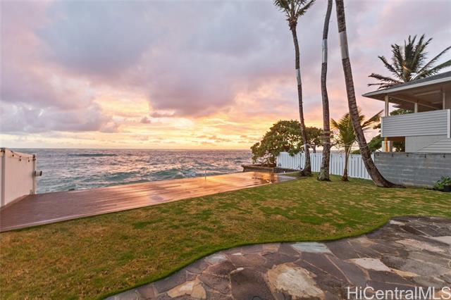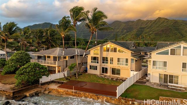 HALE MAKANI MOANA, the ultimate in Oceanfront living on Oahu's East Side. This stunning 4-bedroom, 4-bath residence blends modern elegance with island charm, showcasing panoramic ocean and mountain views from nearly every level. Thoughtfully remodeled in 2019, the home offers a flexible floor plan with multiple living spaces: a spacious recreation room with separate entry and bath on the first floor, a light-filled main living area and chef-inspired kitchen on the second, and a serene primary suite with loft/office retreat on the top level. High-end finishes, and tasteful furnishings create a refined yet welcoming atmosphere. Step outside to enjoy direct water access, gentle trade winds, and endless sunrises over the Pacific. Built in 2003 with updated amenities and stylish design, this rare oceanfront gem delivers the perfect balance of sophistication, comfort, and the relaxed pace of island life. An exceptional opportunity to own a piece of paradise in Hauula.