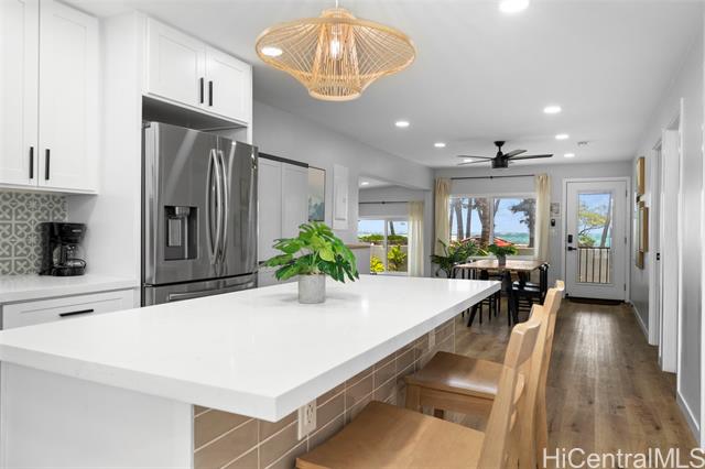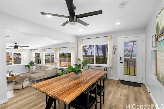 This beautifully renovated oceanfront duplex presents a rare and exceptional opportunity, featuring two spacious 3-bedroom, 2-bathroom units—each with its own private yard, separate entrance, and stylish modern upgrades throughout. Located just steps from the shoreline, enjoy unobstructed ocean views and the serene sound of waves right from your doorstep. Whether you’re looking to embrace the savvy benefits of house hacking by living in one unit and renting out the other, or seeking the perfect setup for multi-generational living, this home offers flexibility, comfort, and privacy. Thoughtfully designed for island living, it boasts ample parking for multiple vehicles, inviting outdoor spaces, and a layout that captures natural light and sea breezes. This is more than just a home—it’s a lifestyle investment in one of Oahu’s most scenic coastal communities.