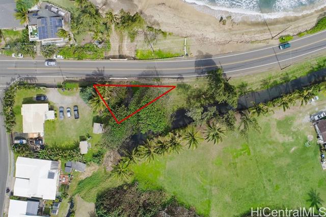 54-210 Kamehameha Hwy is a 3,337 square foot triangular lot located across the ocean and just down from the mountains of Hauula. Just a minute north is the Hau'ula Shopping Center with grocery, medical, post office and eateries. Within a couple of minutes you have Kakela Beach park with wide open grass areas and white sand beach. The property is bordered by Kamehameha Highway and a state-owned bridge, with a freshwater stream flowing through the center of the parcel. The land is being sold as-is. All prospective buyers are responsible for their own due diligence determine the property's potential use.