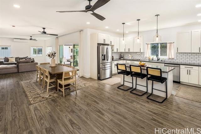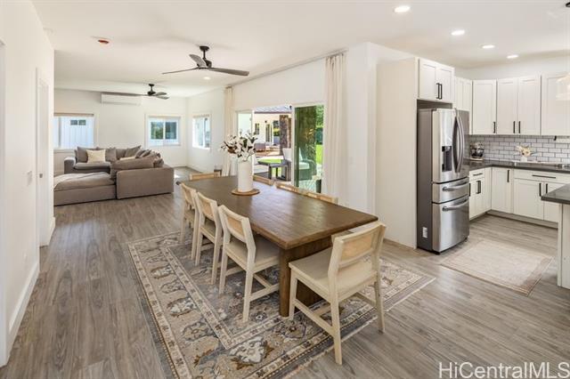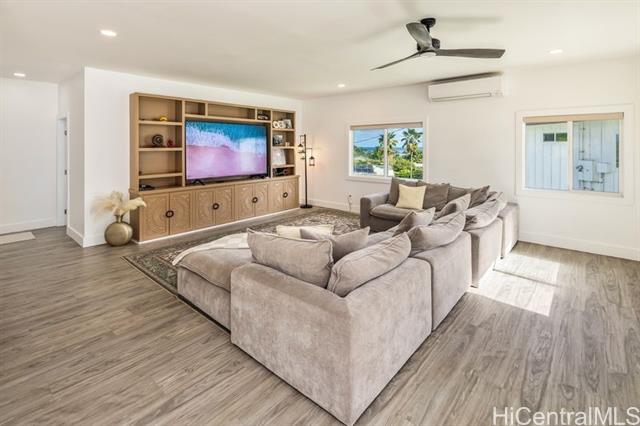 OPEN HOUSE 11/22/25 - 9AM - 12PM. This modern island home on an expansive 8,779 sqft lot at the base of the Koolau Mountain range, blends contemporary design with the natural beauty of its tropical surroundings. Clean architectural lines, expansive windows, and an open-concept layout create a bright, airy atmosphere that seamlessly connects indoor and outdoor living. Breezy lanais, wood and rock accents, and polished finishes echo the textures and tones of island life, while thoughtful features—such as solar heater, generous storage, and sleek modern fixtures—offer everyday comfort and convenience. Mountain landscapes and a manicured yard frame this 3 bedroom/2 bathroom home, bringing the vibrant outdoors right to your doorstep. The property also features a second home for sale on the same compound, offering a rare opportunity for multi-generational living. Whether entertaining guests, enjoying quiet mornings with North Shore trade winds, or taking in stunning panoramic views of the surrounding scenery, this home embodies relaxed luxury and the effortless elegance of contemporary island living.