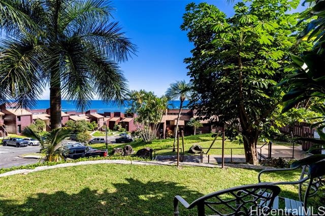 Makaua Village is positioned at the footsteps of lush mountains, along quiet coastal Kaneohe, directly across from stretches of sandy beaches, nearby parks, hiking trails, and fully surrounded by Oahu's natural beauty. This studio residence features direct ocean-facing views from the living area and covered lanai space, where you can watch humpback whales and enjoy stunning turquoise ocean waters. Upgrades include newer kitchen cabinetry, an updated bathroom, popcorn ceiling removal, and more. This townhome community nestled into Crouching Lion's hillside overlooks the Ocean, and includes a swimming pool and entertainment spaces. Located just across from sandy beaches, coffee shops, and newly opened restaurants, enjoy the island life to its fullest with this cozy oceanfront residence; welcome home to Makaua Village #115.