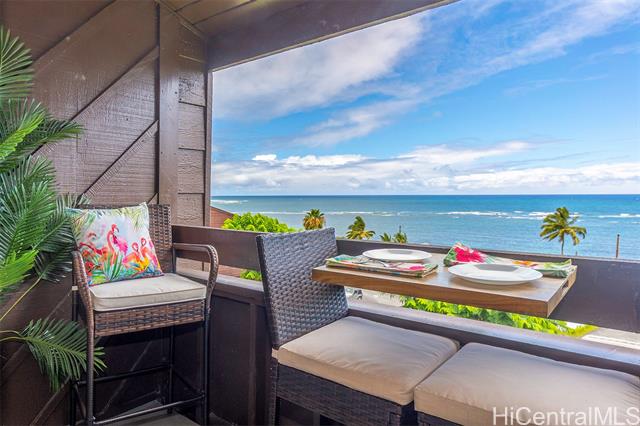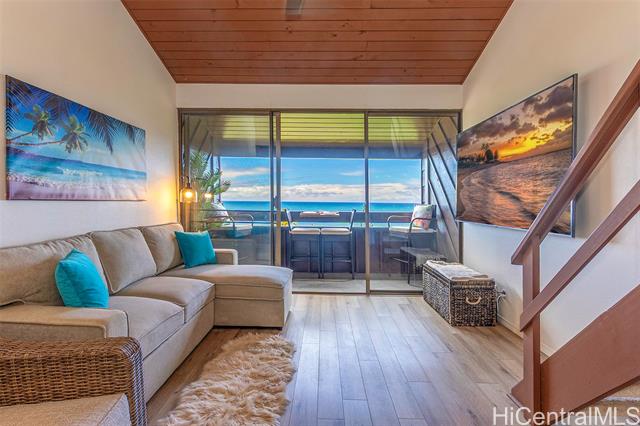 Live life like you're always on vacation, just steps from the ocean. Perched above Kaaawa’s coastline, Makaua Village #526 offers a rare chance to own a 1BR-style Loft-Studio condo with panoramic ocean views from one of the highest vantage points in the community. This spacious 537 sq ft unit (largest of its kind) features soaring vaulted ceilings, vinyl plank flooring, new carpet installed upstairs, and clear pride of ownership. Includes one assigned parking stall. Pet-friendly community with pool, party pavilion, car wash station, and lush mountain surroundings. Steps to the water and just around the corner from the iconic Crouching Lion trailhead—famous for its sweeping views right above the complex. Minutes to the newly reopened Crouching Lion Restaurant, Kahana Bay, and endless beaches. Easy drive to Kaneohe, Laie, and BYU-Hawaii. Turn-key and flexible—ideal as a home, escape, or investment. 3D virtual tour available. Book your showing today!