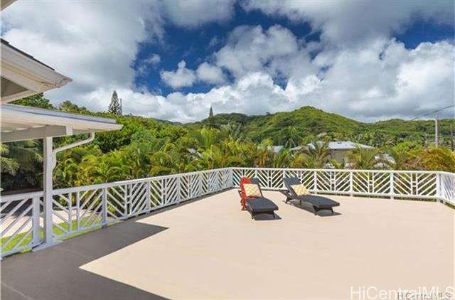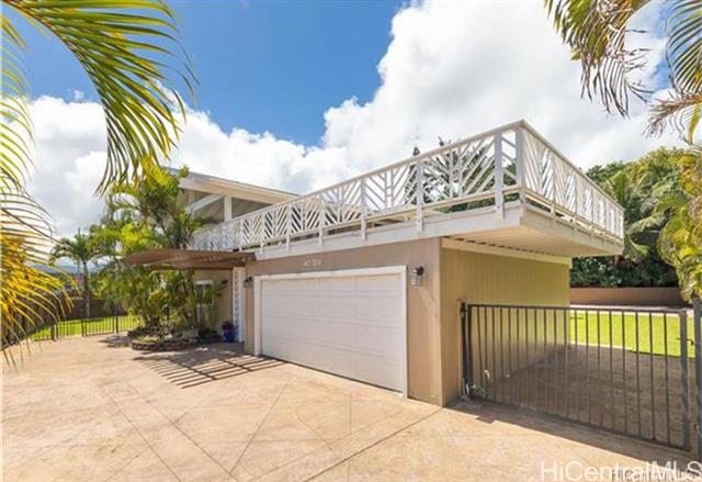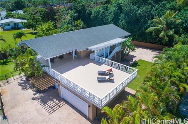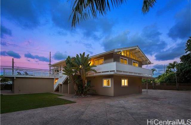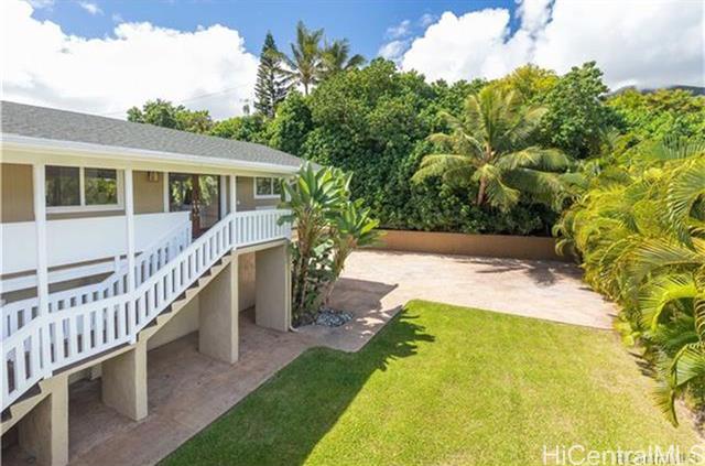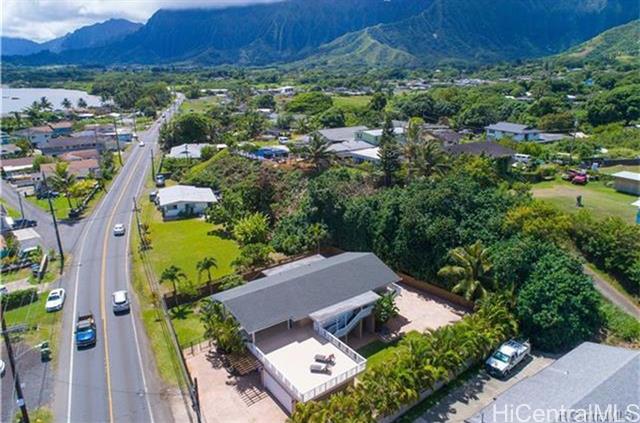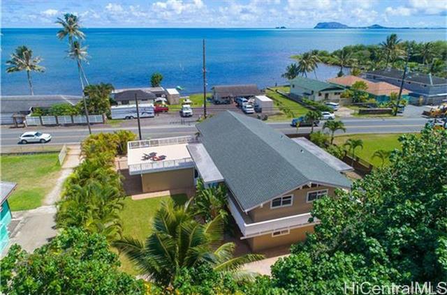 One of the largest lots and homes on Kam Hwy in Kahaluu. Spacious interior and exterior, Great and large lanai with views of Kaneohe bay and Chinamans Hat. Yard completely fenced and gated. Large portion of yard stamped concrete. 2 car garage with enough space for an additional 4 vehicles in driveway. Split air conditioning on 2nd floor. Ceiling fans for all first floor bedrooms. 1st floor block and stucco. Layout allows flexibility to split living / bedrooms for separate units Convenient location, short drives to MCB, Windward Mall, Likelike, H3.