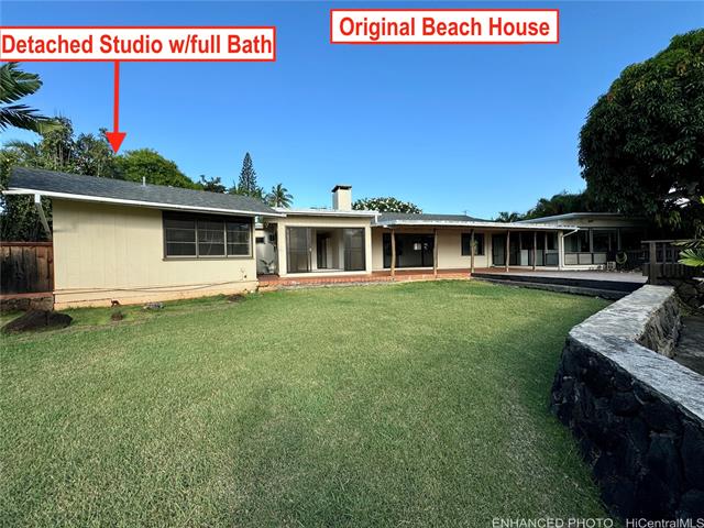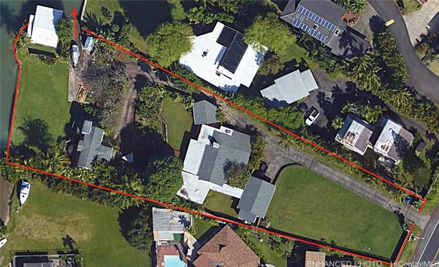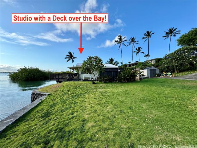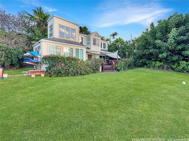 A rare Oceanfront property is available create the perfect Tropical Estate! This extraordinary offering spans over 41,000 sq ft of gently sloping land, capturing sweeping ocean vistas and majestic Koolau mountain views, extending from K-Bay Dr to the shoreline. The contemporary oceanfront two story residence, built in 1985, is permitted with three bedrooms has lots of charm. With a lovely living room, dining area and contemporary kitchen, to expansive grounds and a generous deck designed for unforgettable sunsets. At the water’s edge, a private studio retreat features a kitchenette, full bath, and a wraparound deck that extends over the ocean, complete with its own dock. A charming 1955 beach house offers three bedrooms, two baths, a beamed ceiling living room with fireplace, and a separate studio with full bath—ideal for restoration and your creative touch. With ample space to create an additional residence and rare legacy elements including a seawall, boat ramp, boathouse, and dock, this is a singular opportunity to realize a truly exceptional Hawaiian retreat.
