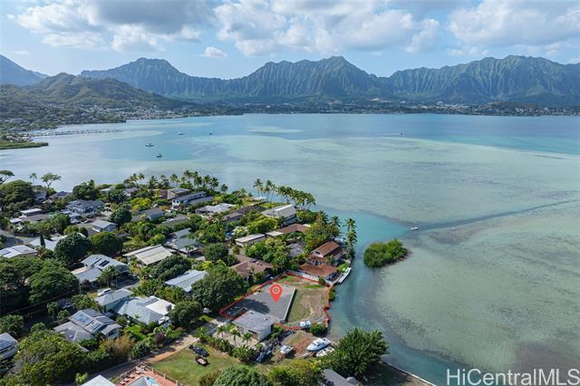 Discover a rare opportunity to build your dream home on this Kaneohe Bay waterfront lot, where panoramic bay and Ko‘olau mountain views set the backdrop. Located in one of Windward O‘ahu’s most picturesque settings, this vacant parcel offers direct bay frontage and an inspiring canvas for a custom residence or island getaway. Enjoy calm waters ideal for paddling, fishing, and exploring the bay, with shopping, dining, H-3 access, and Kane‘ohe town just minutes away. A truly special offering to create something remarkable on the water. New-construction concept plans available upon request. Kindly refrain from driving down the shared driveway without prior approval, as it is an easement and we want to be respectful of neighboring homeowners.