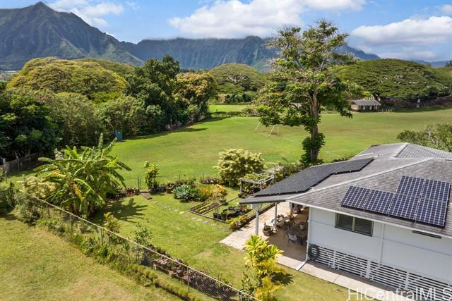 E komo mai! 45-236 Halemuku Pl. is the spacious single level home you've been waiting for! Located on a cul-de-sac, in highly desireable and lush Kaneohe Town, just minutes from the police station, Windward Mall, elementary, preschools, and Kaneohe MCB. Your daily life is surrounded by conveniences and natural views to elevate your spirit. The spacious back yard opens up to a spralling park and has fruiting bananas, vegetable garden, & dragon fruit plants. Wake up to the majestic Koolau Mountains and enjoy the tradewinds through out the home. This home is energy efficient with 26 PV panels owned, solar water heater, and gas stove. This 5 bed 3 full bath home has 2 ensuites for your daily comfort. Space to park up to 10 cars or 5 cars and 1 boat, this home has it all for an island life style you've been dreaming of! First 2 Open houses Thur. 3/27/25 10:30am -12:30 & Sun. 3/30/25 2-5:00pm.
