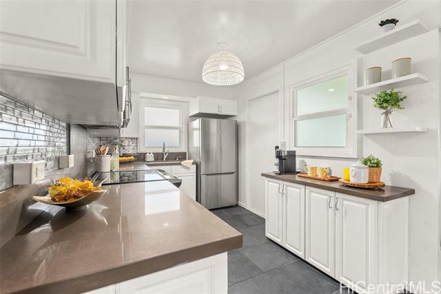 This charming 3-bedroom, 2-bath home in desirable Kapunahala features updated kitchen and baths, luxury vinyl plank flooring, new double-panel vinyl windows and doors, roll-down lanai shades, and more! Enjoy indoor-outdoor living with a spacious lanai-perfect for entertaining-and a spacious backyard with endless possibilities. Conveniently located near shopping, dining, and freeway access. A must-see home offering comfort, convenience, and versatility.