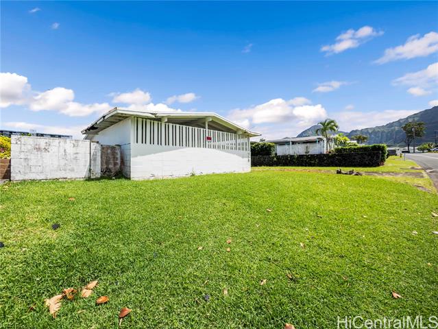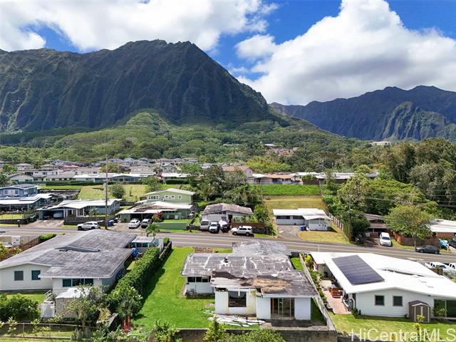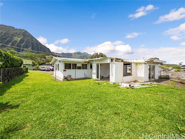 Great list price based on value of land only; far below 3-year-old appraisal. Property is positioned for high interest & offers. Request offers due by Weds. April 8, 10 AM. Structure remaining is in teardown condition without cabinets, appliances, windows, walls, etc. Have you been waiting for the right home to come on market? Maybe this is it instead! Buy the land & build it just the way you want. Also major potential for contractors to build a house in this super community on an easily accessible and mostly level lot. Great views of the mountains front and back! Please do not enter the land/property without a confirmed showing with listor & the signing of the liability waiver prior. Showings are limited to walking the lot as entry into the structure is not permitted due to safety concerns. Security cameras on property. Survey, title report, building permit package, Seller Disclosure, demo estimate are available upon request. Easy access to Hoomaluhia Botanical Garden, Windward City Shopping Center, Likelike and H-3, Kaneohe Bay Drive, and both Kailua and Kaneohe towns. Sweet neighborhood for your research and consideration. Work on your calculations and bring in an offer.