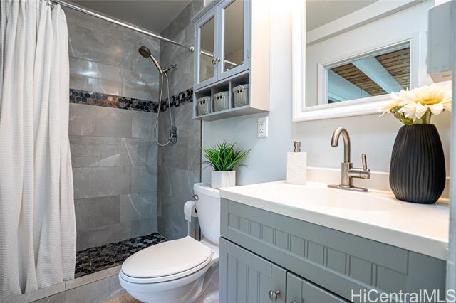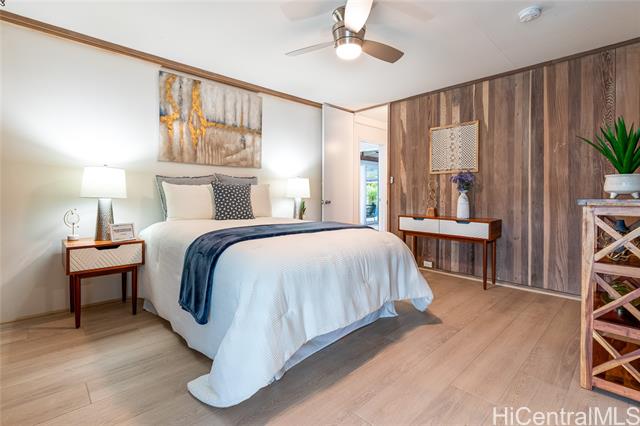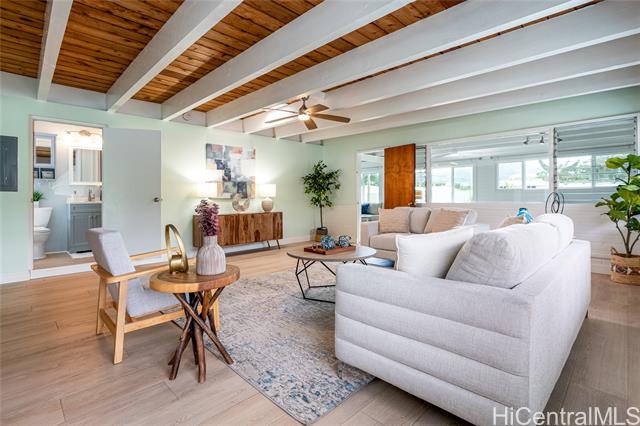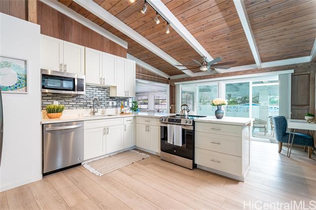 Love of ownership clearly evident in this beautifully reimagined single-level home. Offering over 2,000 square feet of living space, and a fully enclosed, low-maintenance yard, this 3 BD/2 BA home has been extensively upgraded between 2021-2025 and blends modern sophistication with lasting quality. Improvements include a new sewer line, new premium LVP flooring, new electrical panel and wiring, new silicone roof and metal gutters, new energy-efficient double-pane windows and sliding doors and more. The beautifully appointed kitchen serves as the heart of the home, featuring generous storage and expansive counter space—perfect for both everyday living and elevated entertaining. And rest easy knowing there is a 14-panel owned SunPower PV system paired with a Tesla battery, providing energy efficiency and peace of mind. Designed with comfort and connection in mind, the open layout seamlessly accommodates gatherings if you have the desire to entertain, or simply relax on the covered lanai with your favorite beverage and enjoy the trade winds and breathtaking Ko'olau Mountain views. Welcome home.