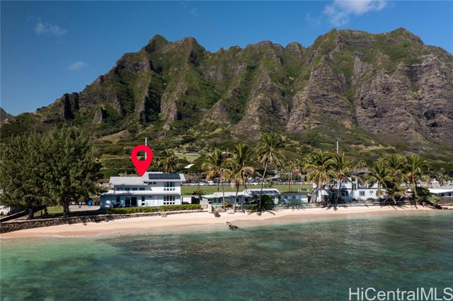 Welcome to your beachfront home! This turn-key ready, single-family home was constructed in 2016. Enjoy the panoramic ocean views in your front yard and the magnificent Ko Olau mountain range as your backdrop! Oversized deck to enjoy the morning sunrise with your views of Mokoli'i Islet (otherwise known as Chinaman's Hat), watch the turtles swim by or admire the shooting stars at night! Kitchen has spacious quartz countertops, plenty of cabinet space and stainless steel appliances for your inner chef. Luxury vinyl plank flooring and elegant finishes throughout the home. Toto toilets in both bathrooms. 4 split air conditioners, owned photovoltaic panels, solar hot water heater (new in 2024), powerwall battery and electric charger installed to help keep energy costs down. An electric solar powered gate was installed for privacy and convenient parking space for vehicles and a boat! Small private boat ramp is ideal for water enthusiasts and launch your kayak right from your front yard! VA assumption at 2.25%. **Open House on Feb 16th, offers to be submitted/reviewed on Monday 17th.**