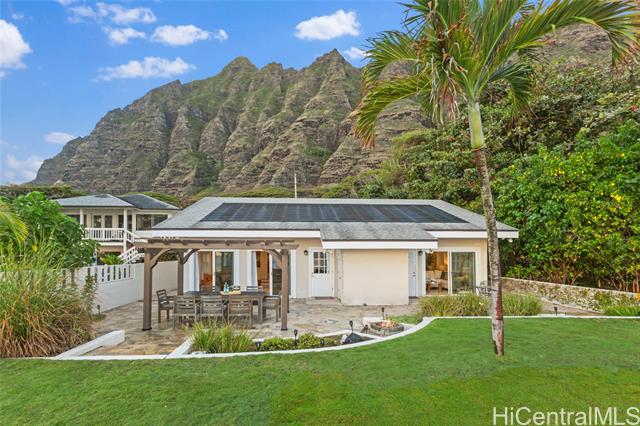 Experience true island living in this rare oceanfront, permitted duplex — Mahoe Moana. With two electric meters, a grandfathered seawall, sandy beaches on both sides, and commanding mountain views, this home delivers an unmatched coastal lifestyle. Enjoy an open-concept kitchens, spacious living areas, and approximately 70 shingle-style solar panels that blend seamlessly into the roof’s design. Additional perks include parking for 6–8 vehicles, beachside shower, fire pit, natural stone lanai, and grassy green yard. Located beside Kualoa Ranch and just a paddle from Chinaman’s Hat, your backyard becomes a front-row seat to Hawaii’s natural wonders—whales in winter, monk seals, sea turtles, and vibrant reef life right offshore. Soak in unforgettable sunrises and moonrises from your oceanfront lanai. Perfect as a multigenerational home, a second residence, or an investment opportunity—this property captures the very best of island living. ***Currently enjoyed as a family home, so there are no rent rolls. Expenses available upon request.