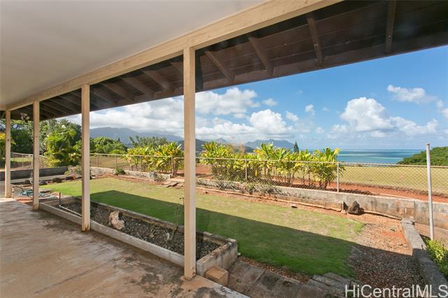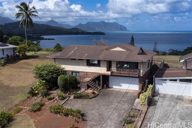 Rare Kaneohe property with both panoramic ocean and Koolau mountain views on a generous 10,000 sq. ft. lot! A perfect blend of space, flexibility, and stunning scenery in this two-level, single-family home perched above Kaneohe Bay. Home features 4 bedrooms, 2 full bathrooms, and an adaptable floor plan with the potential to convert bottom floor bedroom into a 5th bedroom (ideal for possible multi-generational living, home offices, or guest accommodations). This beautifully landscaped home could use some interior TLC, but floorplan offers both flexibility and accessibility. The open concept layout also maximizes natural lighting. It is conveniently located near Windward Mall, grocery shopping, schools, banks, restaurants and more.