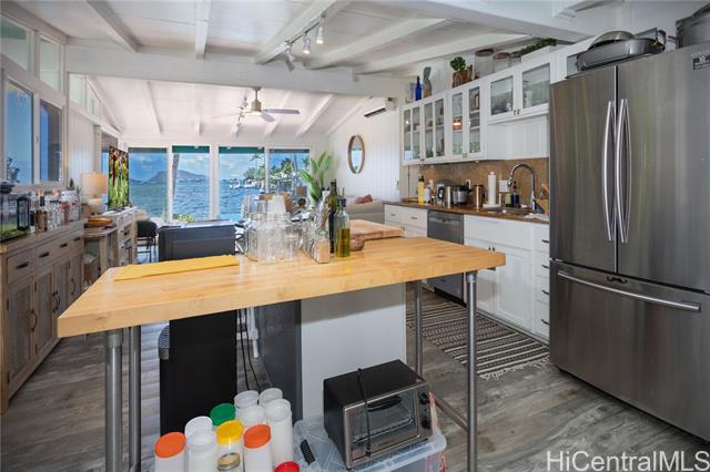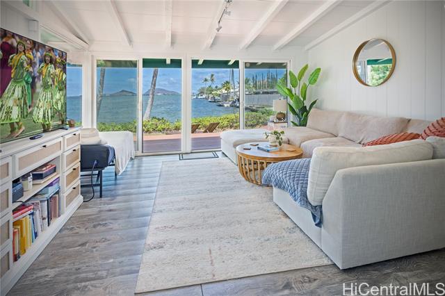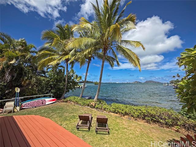 Experience the elegance of bayfront living with these two impeccably remodeled residences on Kaneohe Bay. Each home is separately metered and offers 2 bedrooms, 1 bath, expansive lanais, and captivating views of the bay. Modern split AC systems in every room ensure year-round comfort and style. The lower residence is a private sanctuary at the water’s edge, where an open-concept design and a chef-inspired kitchen island create the perfect setting for both entertaining and everyday living. Its tranquil setting delivers an unmatched sense of serenity. The upper residence is framed by a lush garden and manicured lawn, welcoming you into a bright and airy interior. From the moment you enter, panoramic views of the vibrant blue waters and passing sailboats set the tone for refined island living. The primary suite showcases an unforgettable view, blending comfort and sophistication in a thoughtfully designed space. Both homes radiate charm, balance, and modern elegance—an exceptional opportunity to embrace the very best of Hawaii’s waterfront lifestyle. More photos to follow and tax records differ.