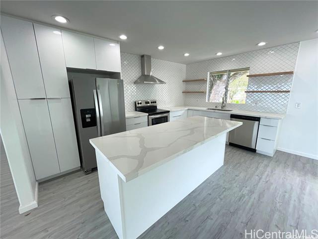 Enjoy panoramic views of Kaneohe Bay, Chinaman’s Hat, and the Ko‘olau Mountains from this updated tri-level home in the desirable Lulani Ocean neighborhood. Featuring 6 bedrooms and 3.5 bathrooms, the flexible layout includes separate entrances on each level—ideal for multi-generational living or rental potential. Modern finishes, open living spaces, and large windows bring in natural light and cool trade winds. Just minutes from bay activities, shopping at Windward Mall, schools, and H-3 access. Complete with a 6-car garage and ample driveway parking, this home offers space, versatility, and exceptional Windward views.