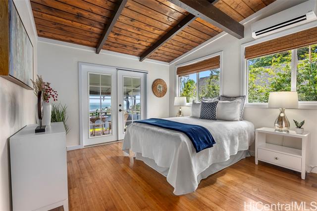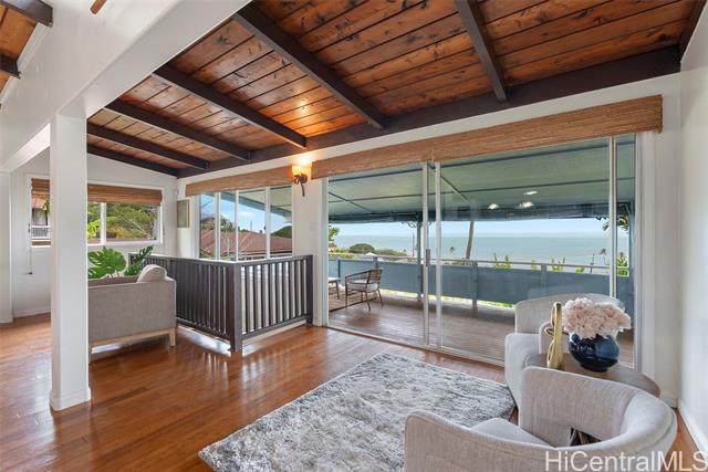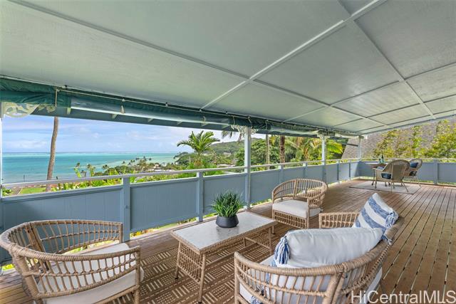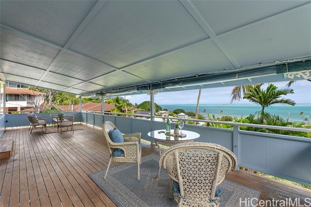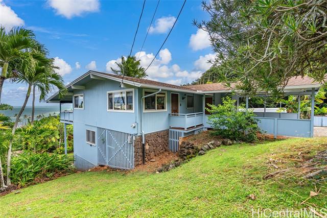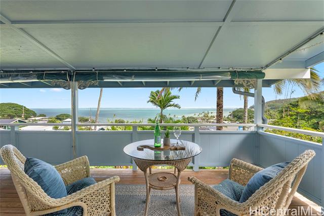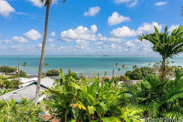 Wake up to an unobstructed Spectacular OCEAN VIEW! This lovely home sits at the top of the beautiful Lulani Ocean community. With an open floor plan and an expansive lanai extending from the living area, this home offers the ideal space to relax and take in stunning views. The open kitchen, with its granite countertops, overlooks the living and dining areas creating a comfortable space to gather, cook and enjoy the trade winds. The primary bedroom is located upstairs and features French doors that open to the lanai - a peaceful spot to enjoy morning views and the sunrise. Two additional bedrooms are downstairs, with a full bath on each level for added comfort and convenience. The home includes a split A/C system in the primary bedroom. Plenty of storage space under the house, roomy enough to keep beach gear, tools, or extra supplies. It could even serve as a handy workspace or hobby area. The large beautifully landscaped backyard provides a private outdoor space to relax, entertain or garden. Minutes from Kaneohe Bay and He'eia Kea Boat Harbor. Close to H3, Marine Corps Base Hawaii, Hickam Air Force Base, Pearl Harbor, restaurants and shopping. SEE VIDEO