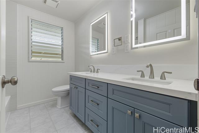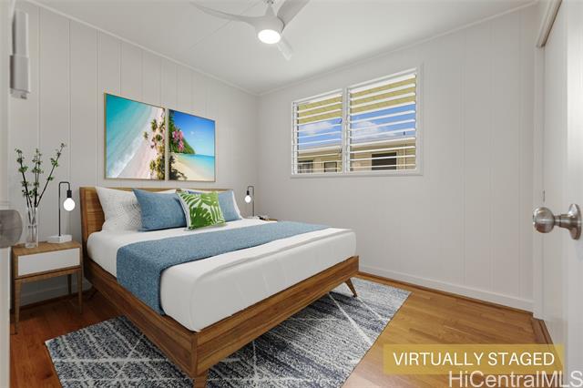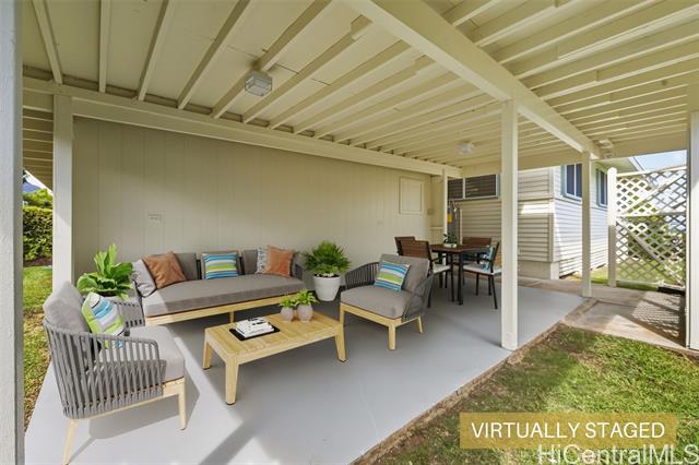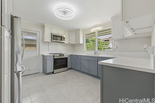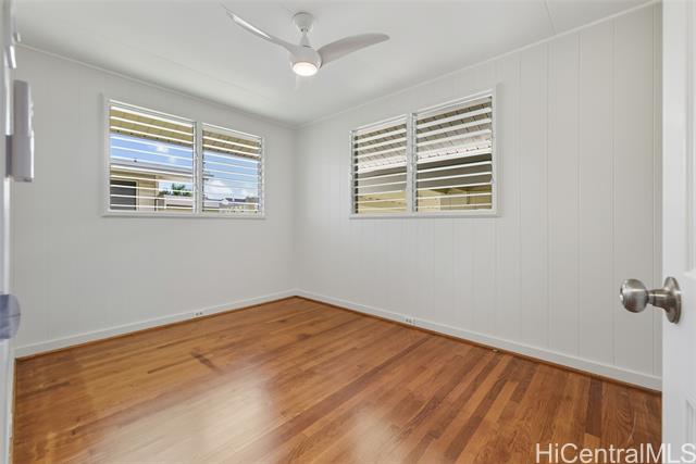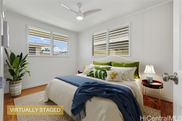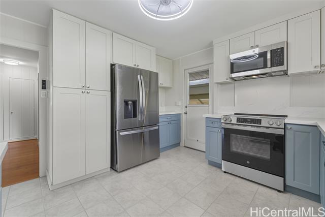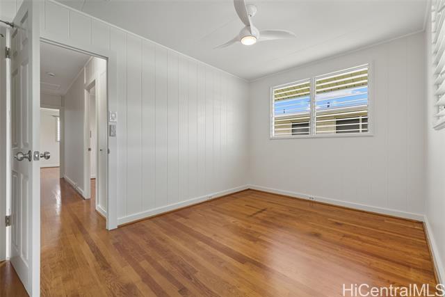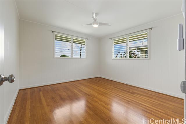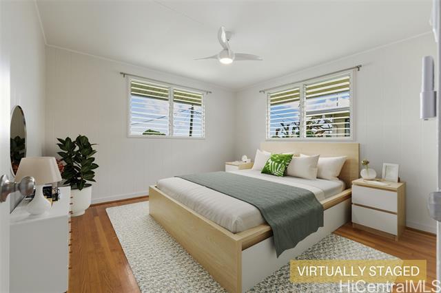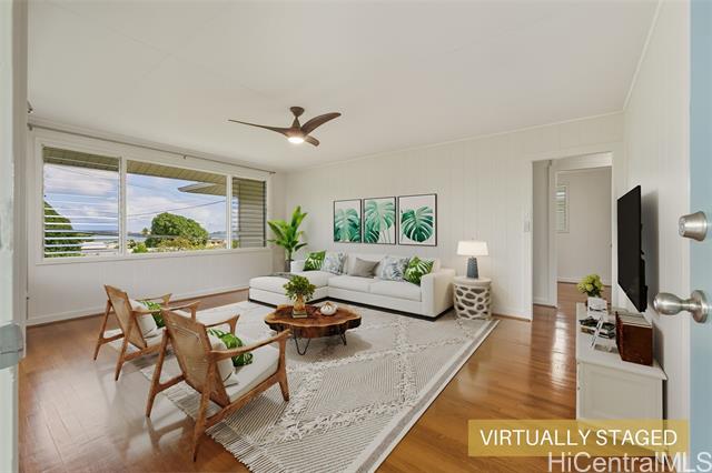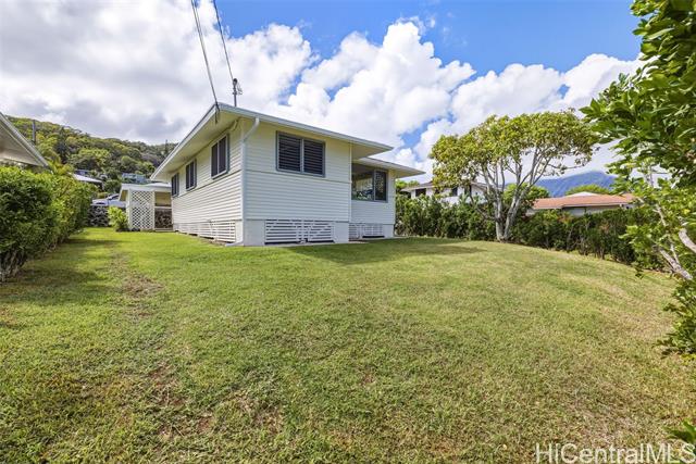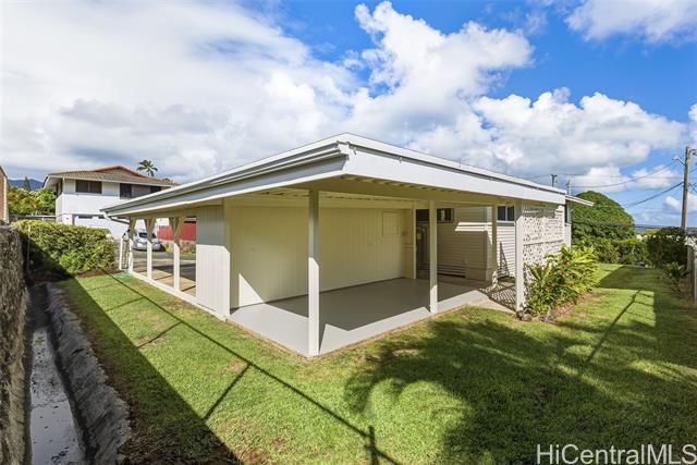 Experience kama'aina living in this beautifully updated single-family home on a desirable corner lot. Recently renovated with a brand-new kitchen and bathroom. Bathroom features a dual vanity with Quartz countertops, lighted mirrors, and tub with shower. Kitchen has contemporary color scheme with blue lower cabinets and white uppers with stainless steel appliances and Quartz countertops. The house has been freshly painted inside and out. A fully fenced yard and new gutters add to the appeal and functionality. Inside, the home showcases original oak floors offering timeless warmth and charm. The living room enjoys expansive views of Kaneohe Bay from large window. The 2 car carport includes 2 large storage closets and a lavatory. A spacious covered patio offers a comfortable area for relaxing or entertaining, rain or shine. The property also features a mature avocado tree, mock orange hedge & a well maintained yard. Conveniently located with easy access to H-3, Pali & Likelike Highways, this move-in ready home combines classic island character, modern updates, and a prime Windward O'ahu location. Entrance to property is on Mikiola Drive. To be sold in AS IS Condition.